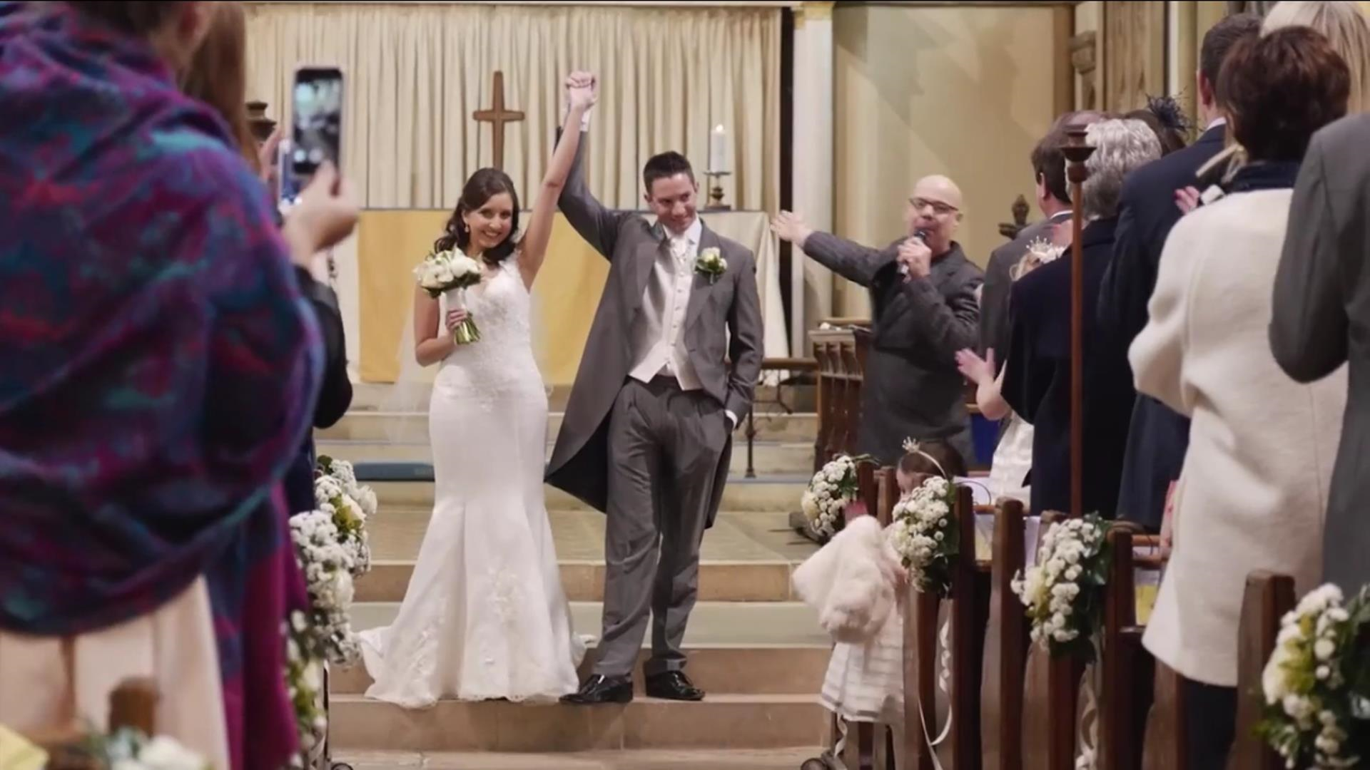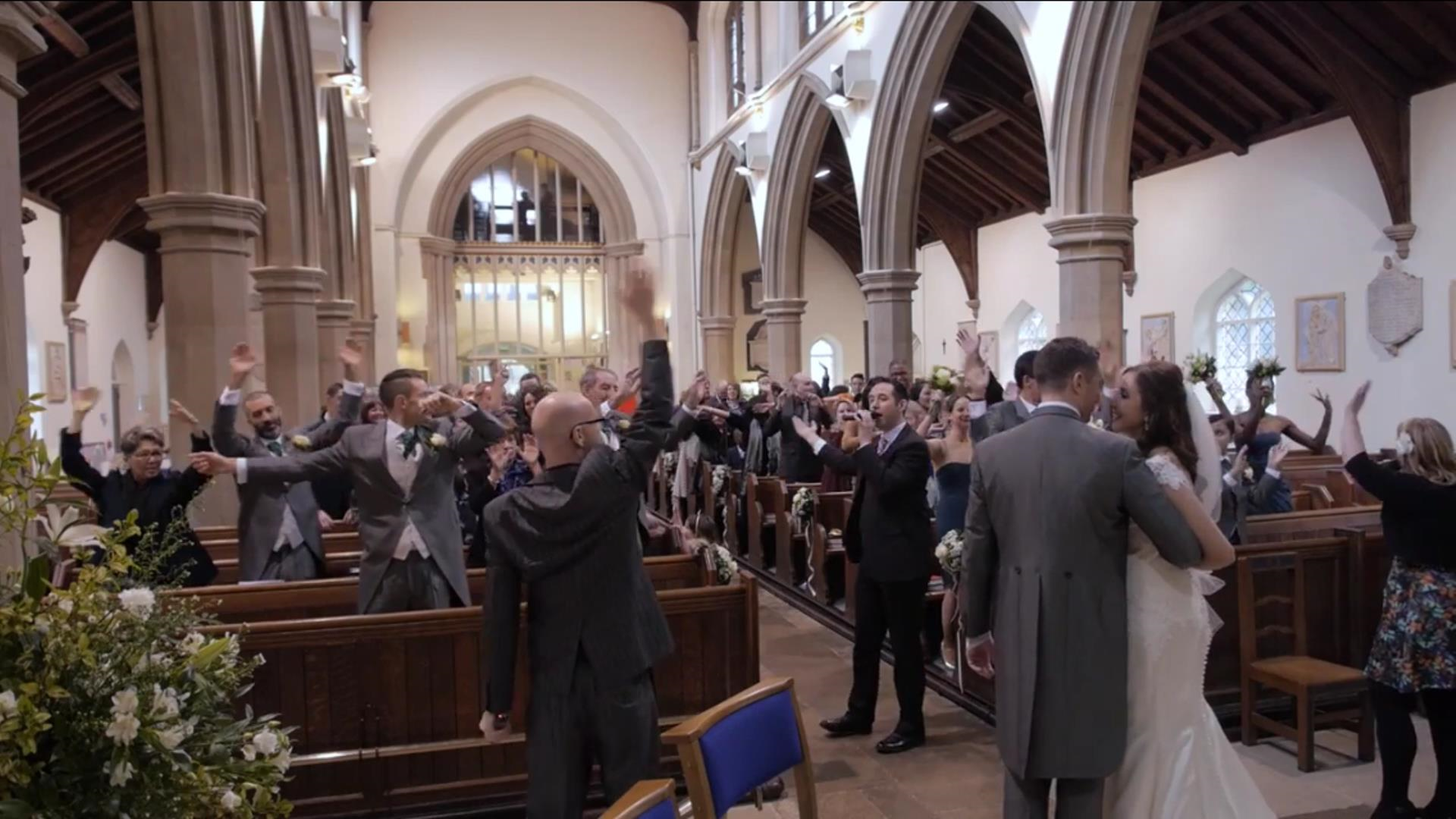 When the celebrant / minister declares you 'Husband and wife' we play the music and one by one stand to sing!