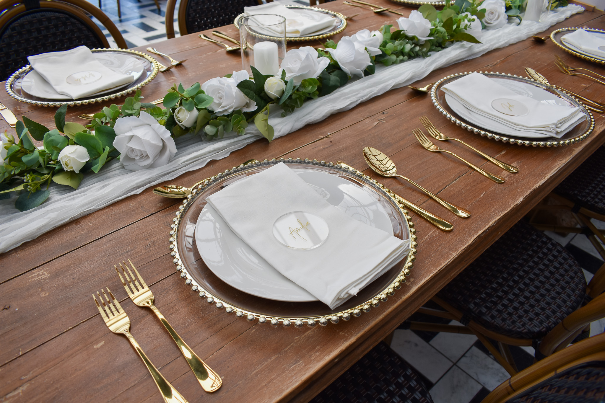 The gold cutlery was very beautiful and it went so well with the charger plates, candle holders, tablecloths and runners, all coordinated and organised by Ash.
