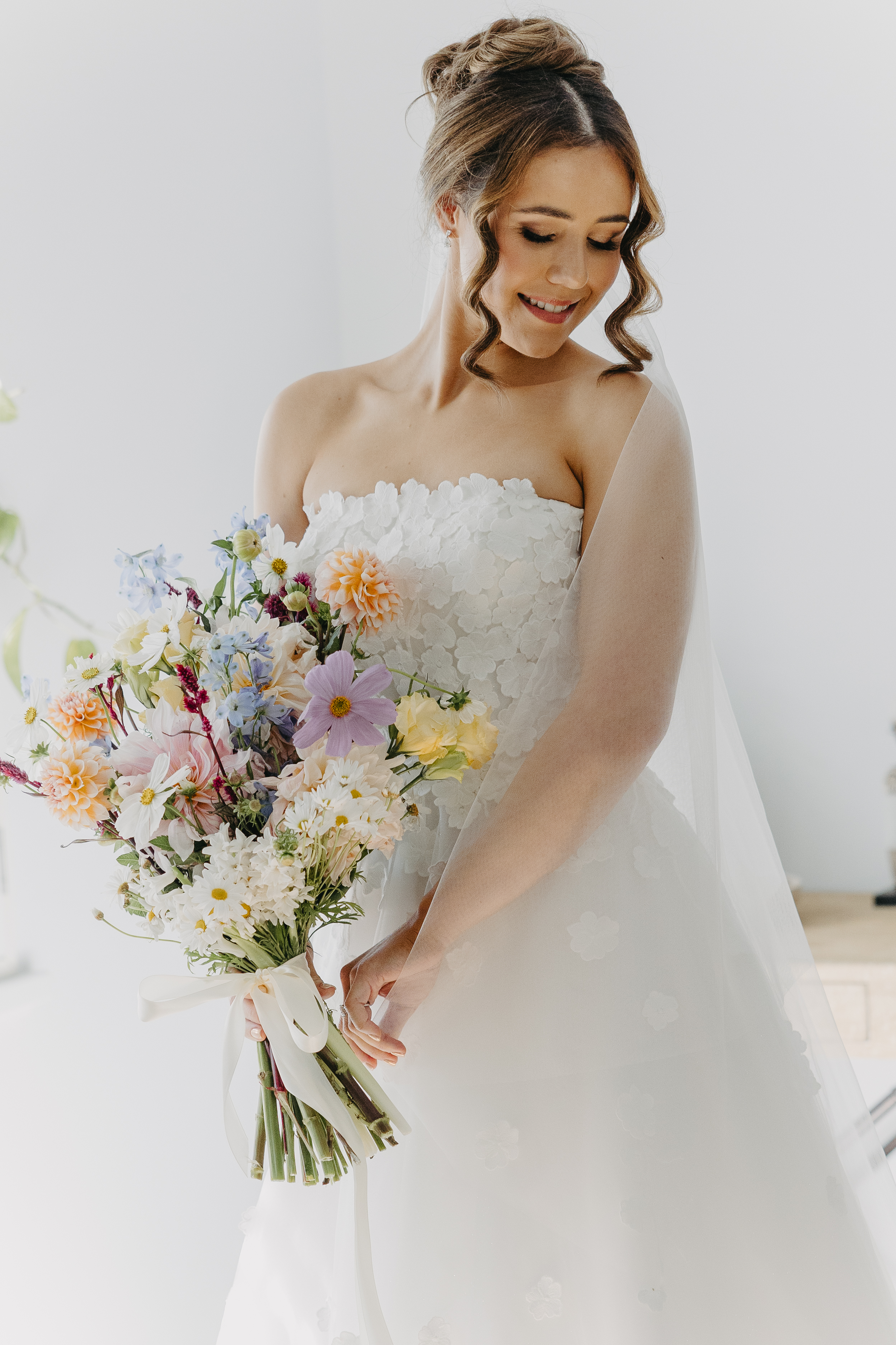 • Custom ceremony florals and bridal room styling for the couple