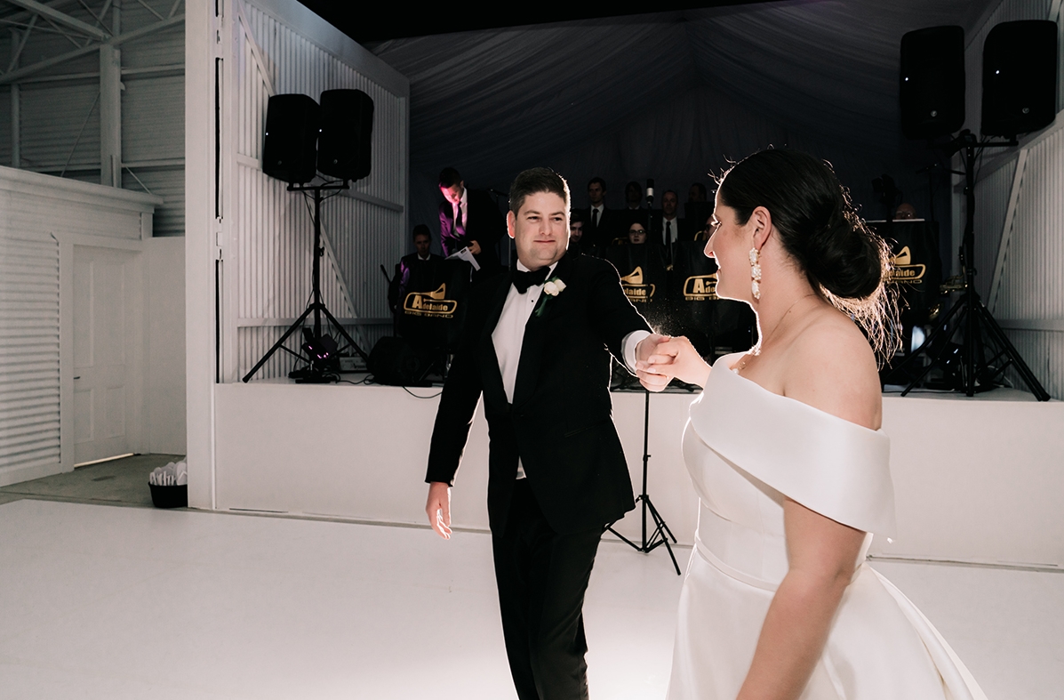 A waterfront setting and expansive decked area offers outdoor alternatives for ceremonies and cocktail celebrations with no event too big or too small. While the couple wanders the rural property taking advantage of its breathtaking photographic opportunities, guests can enjoy drinks and canapes on the deck under glittering festoon lights before being ushered inside for the feasting and fun to follow.