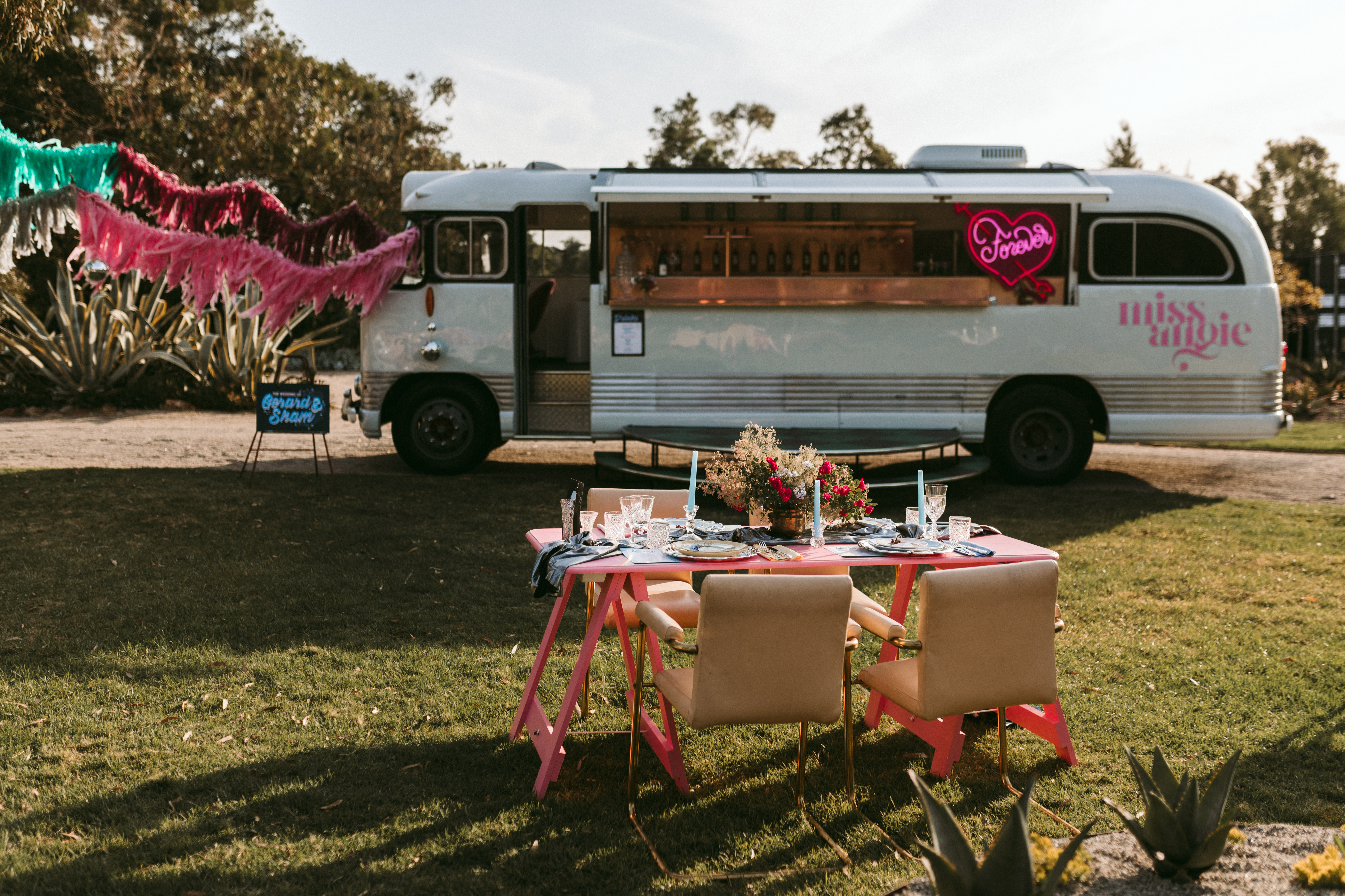 As a DIY venue, you're welcome to add your own personal touch to the spaces — with optimal privacy and exclusive access. Montara Wines provides basic furniture, props, outdoor blankets, power for your vendors, and seamless clean-up. They also offer beverage staff and irresistible drinks packages served from a chic 1950's Bedford school bus! With a wide selection of premium beverages and handcrafted cocktails — you and your guests won't want to leave!