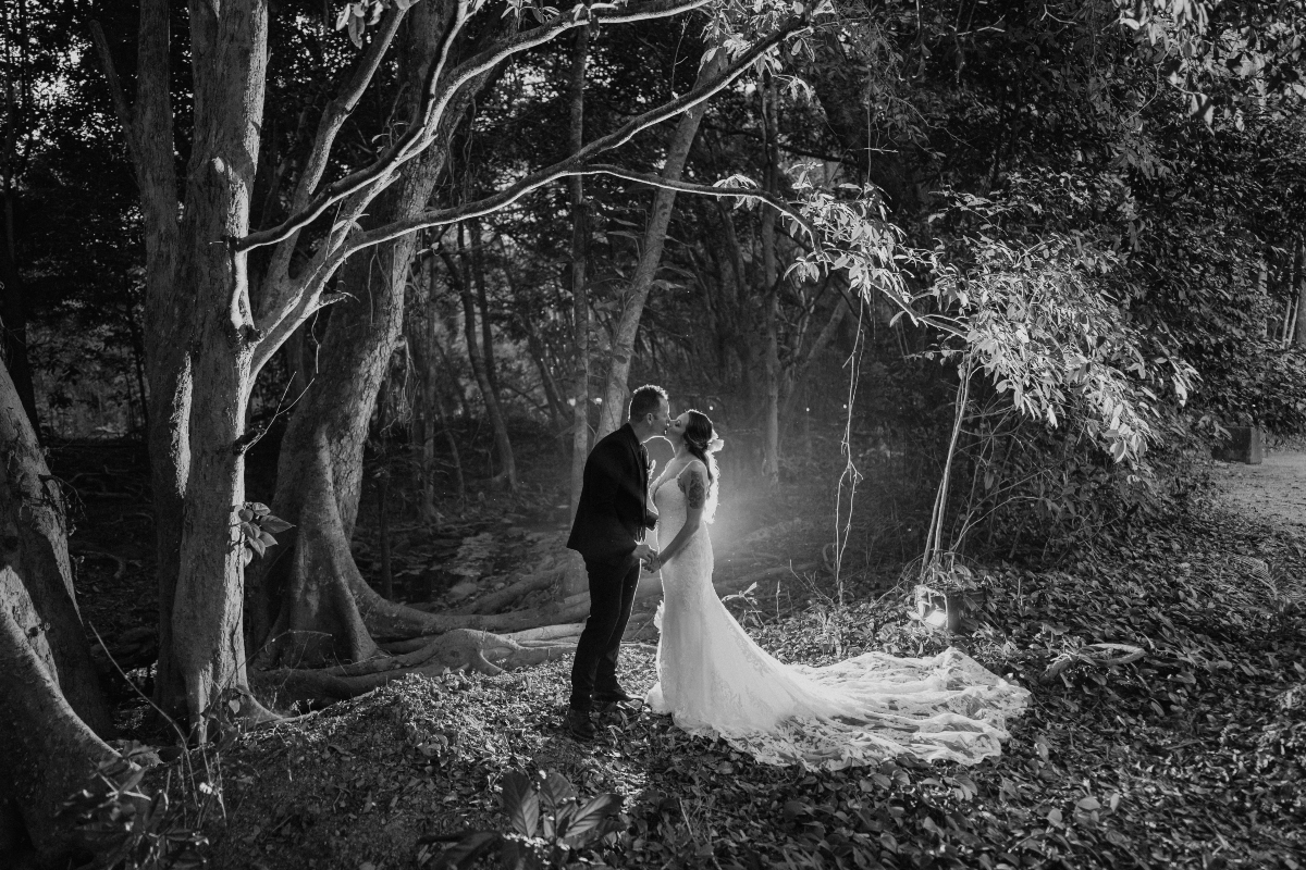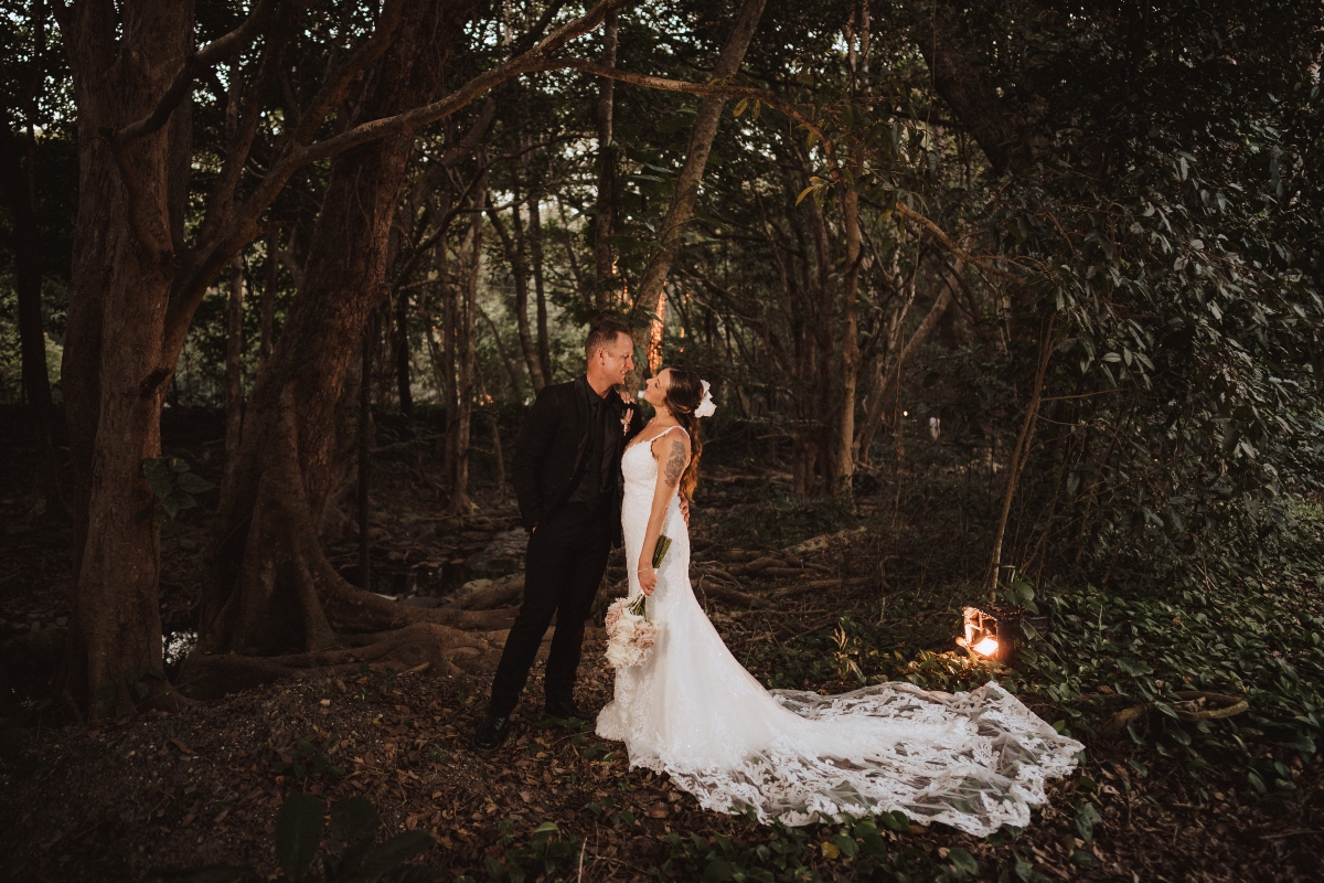 Tucked away in a private tropical rainforest just ten minutes from Port Douglas, Flames of the Forest is a wedding destination unlike any other. Beneath a canopy of fairy lights and surrounded by towering trees, this captivating venue blends natural beauty with refined elegance.