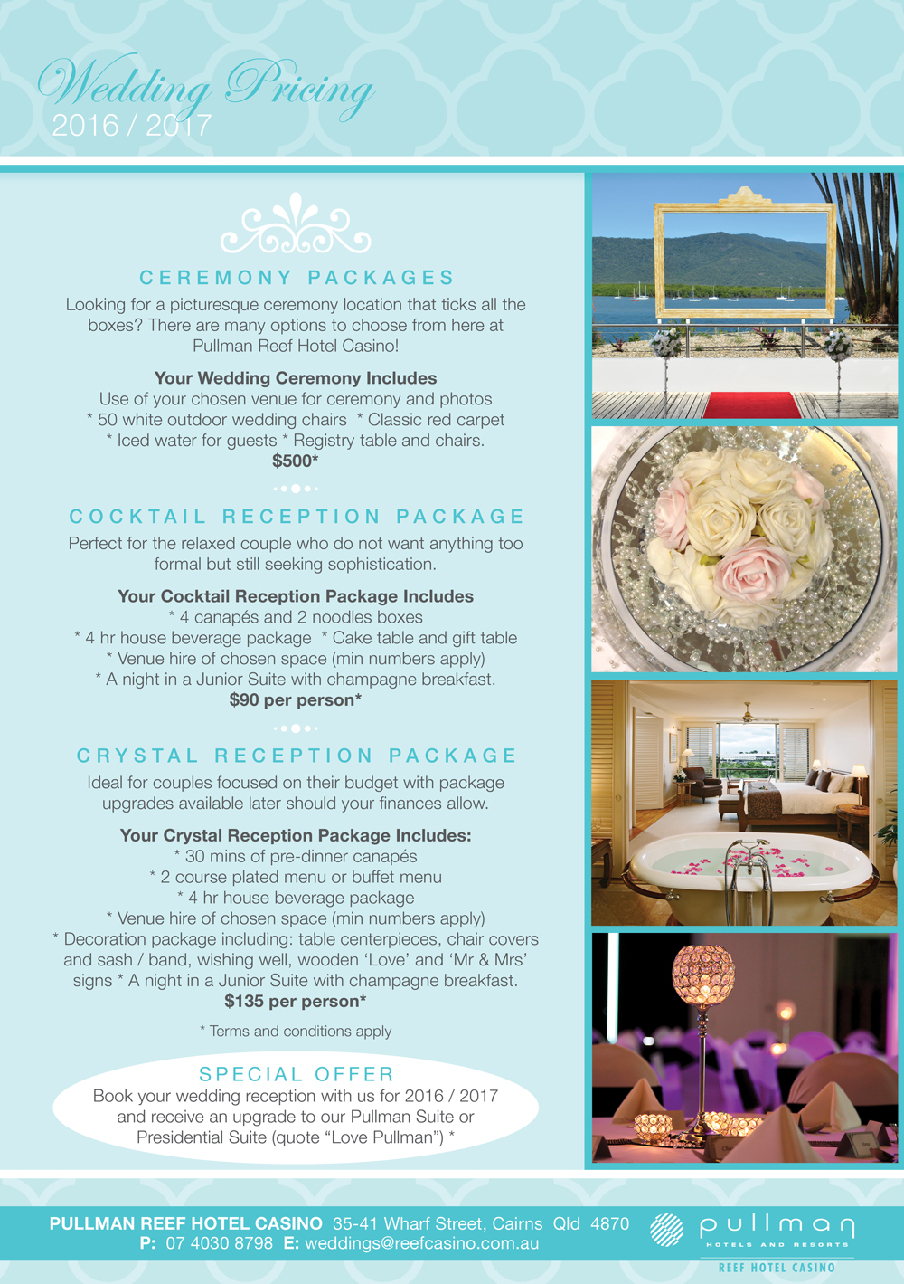 As a wedding professional, Pullman Reef Casino Hotel, Cairns offers expert advice to help couples plan their perfect day. Ask a question or read their expert advice.