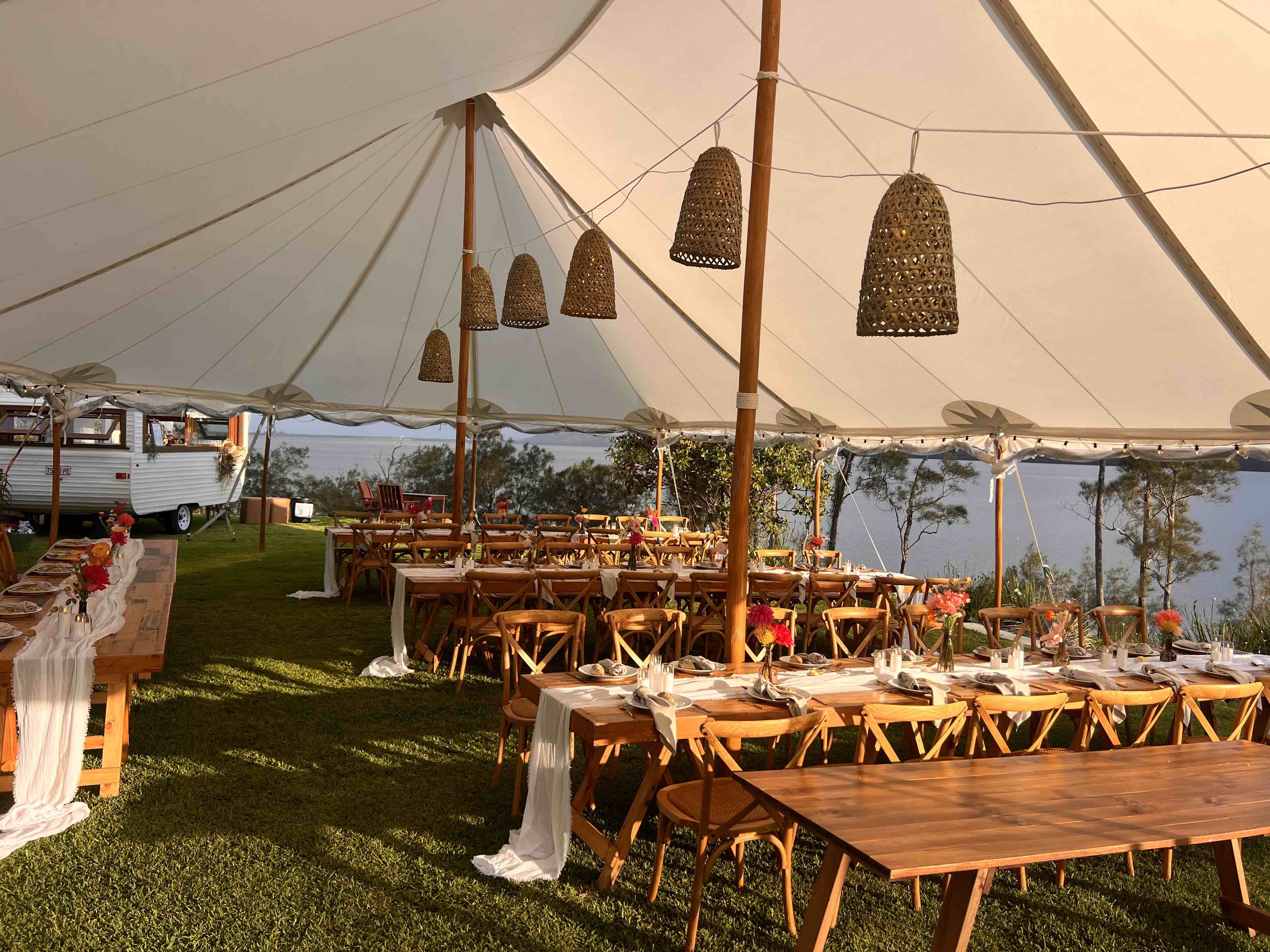 • Timber tables and crossbacked timber chairs for your ceremony and reception.