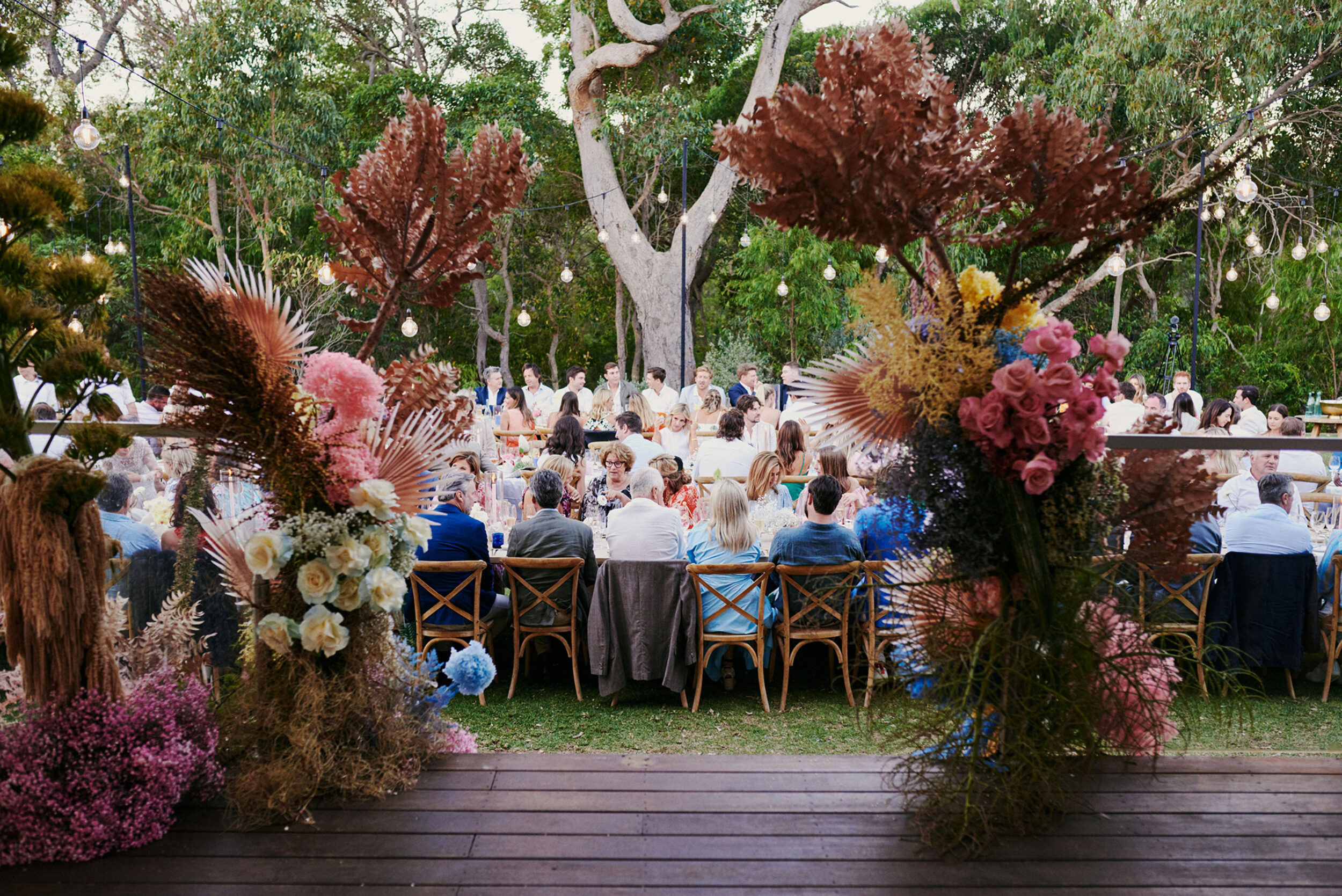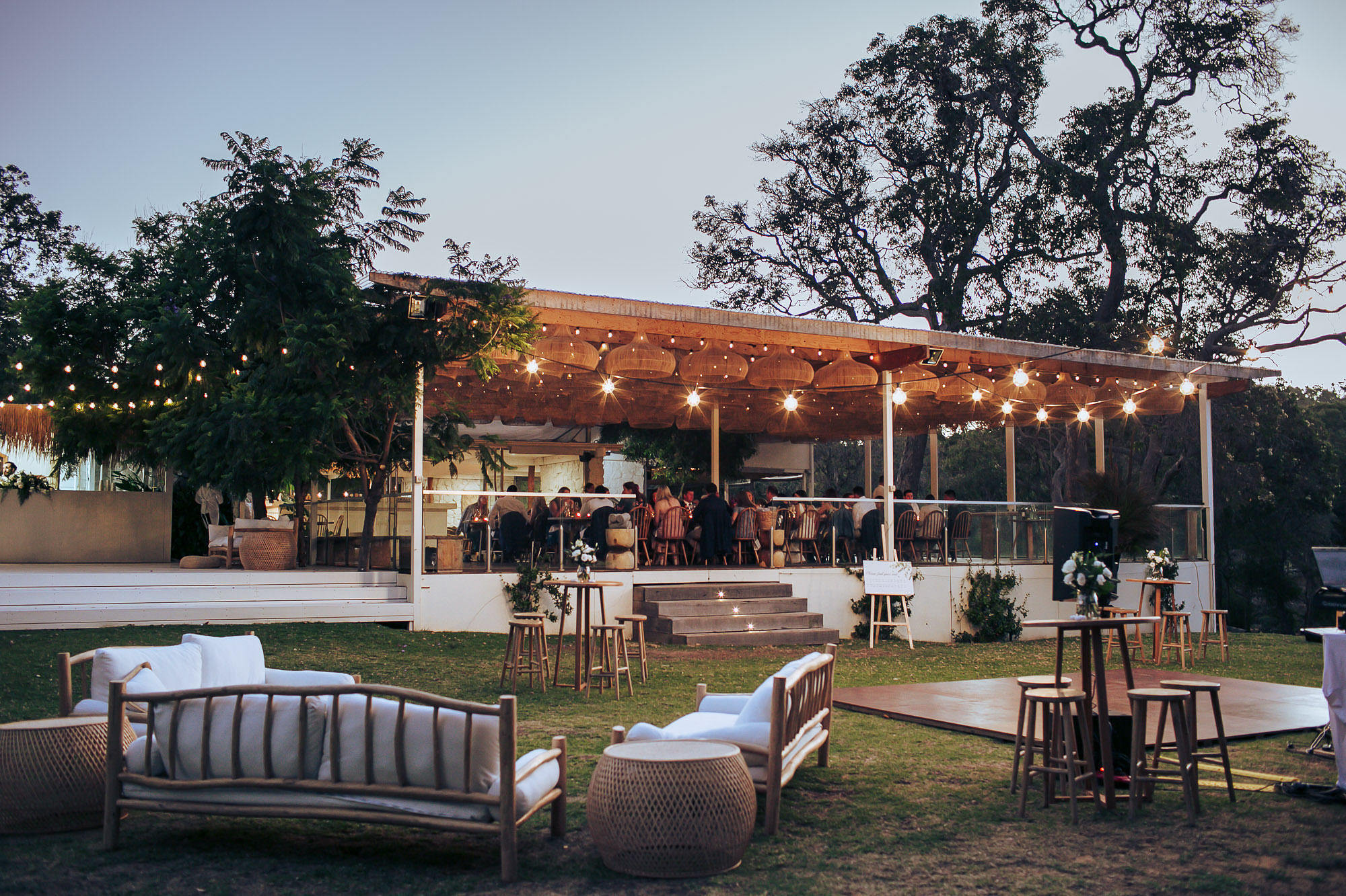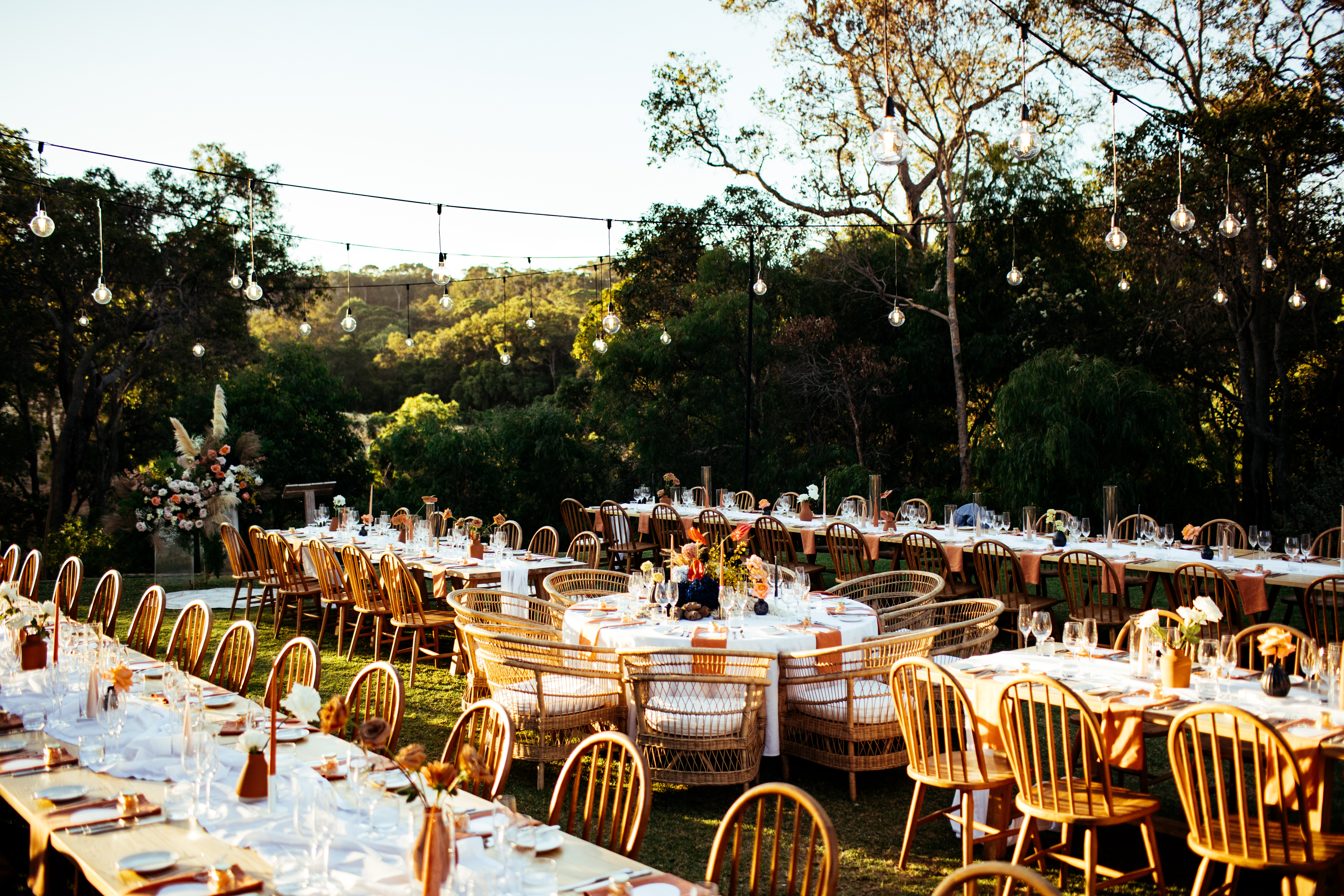 We offer gorgeous ceremony locations onsite. The deck is where the majority of the reception magic happens at Meelup Farmhouse (with wet weather backup inside). Nestled under picturesque cane lanterns, making it an atmosphere you’ll find difficult to leave.