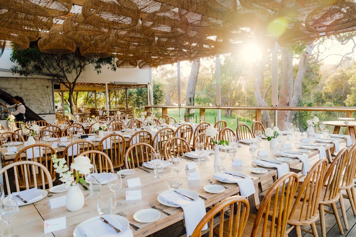 Nestled against the stunning backdrop of the Meelup Reserve, our venue offers panoramic views of native bushland and a gorgeous afternoon golden hour glow as the sun sets, creating a truly unforgettable atmosphere and magical light for your wedding day.