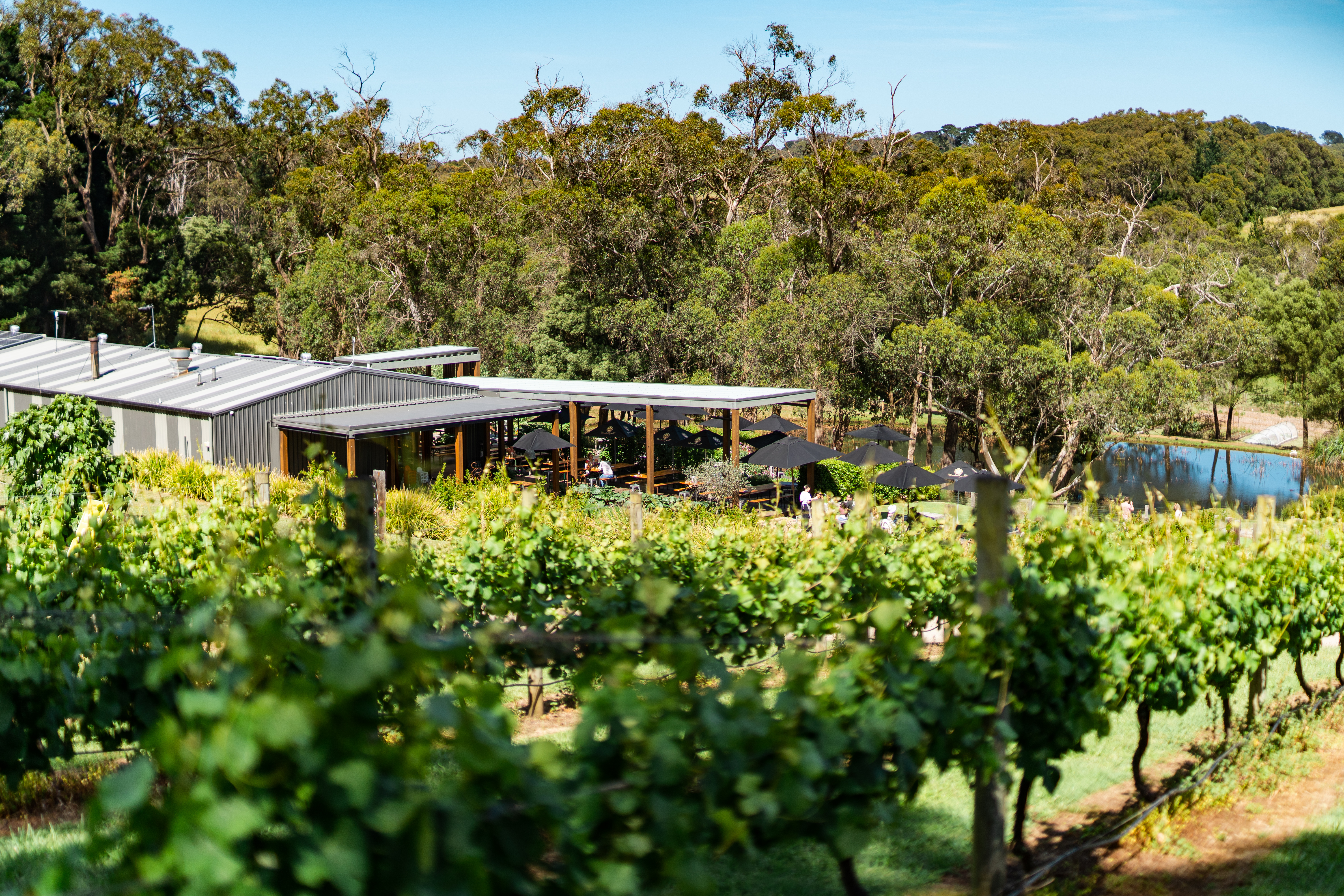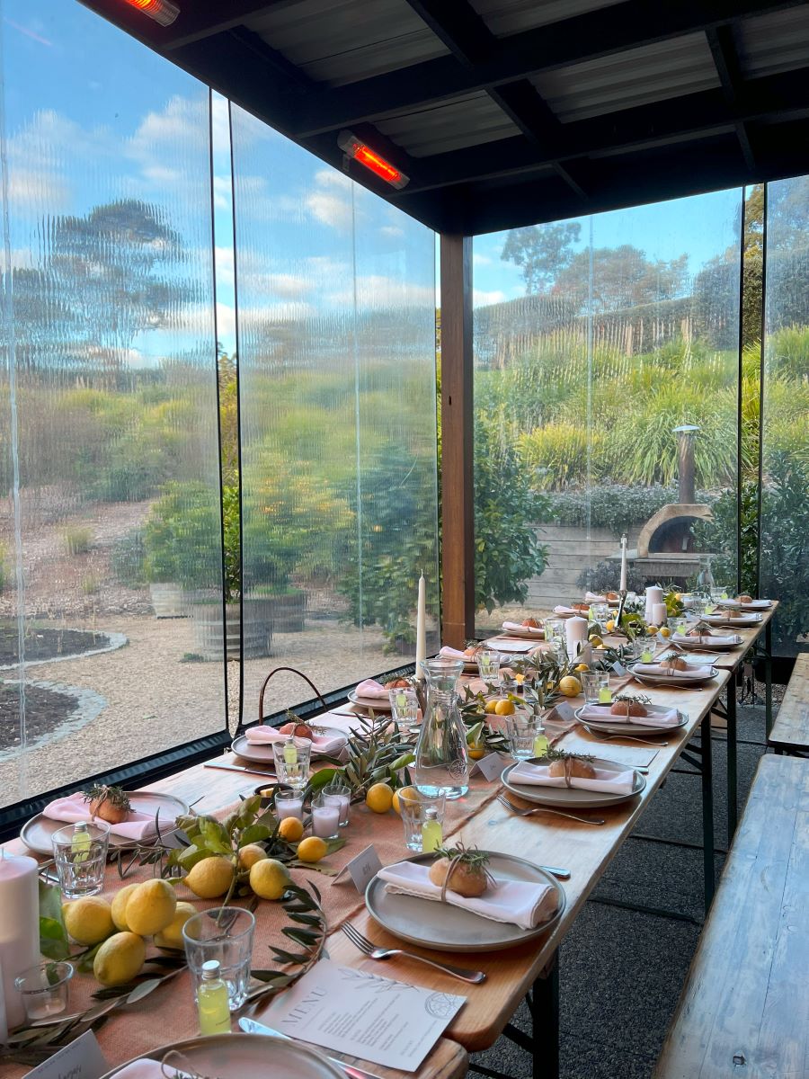 Green Olive at Red Hill provides a variety of idyllic settings for your ceremony, whether it be the enchanting Olive Grove, the lush Vineyard, the serene Lake, or the rustic Remnant Bush. As you navigate through the established olive grove and vineyard, the picturesque hillside becomes the perfect backdrop for your special day. For receptions, the alfresco area, enclosed with blinds and outdoor heaters, offers an immersive experience in the farm's stunning landscape.