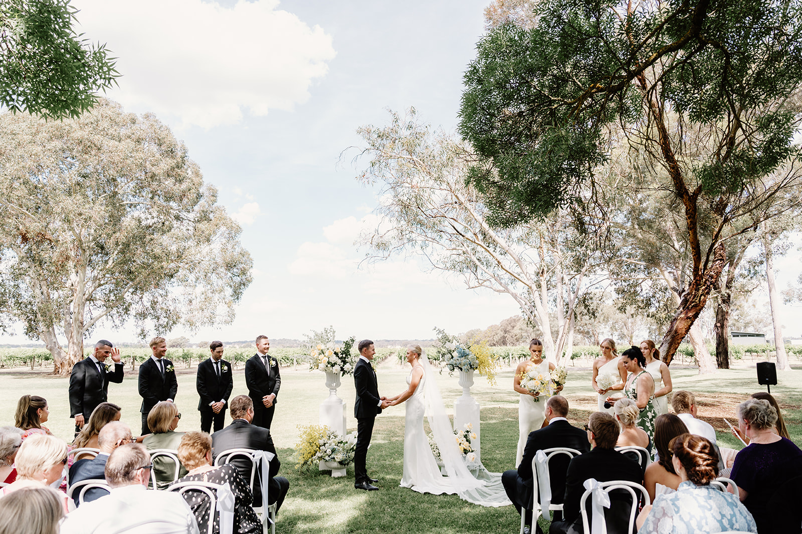 Our venue is situated on the lawn overlooking the historic Calliope Vineyard at Buller Wines in Rutherglen, VIC. Couples who choose our venue for their special day, also have access to 8 gorgeous individual Vineyard or Garden View cottages for themselves, bridal party, family or guests.