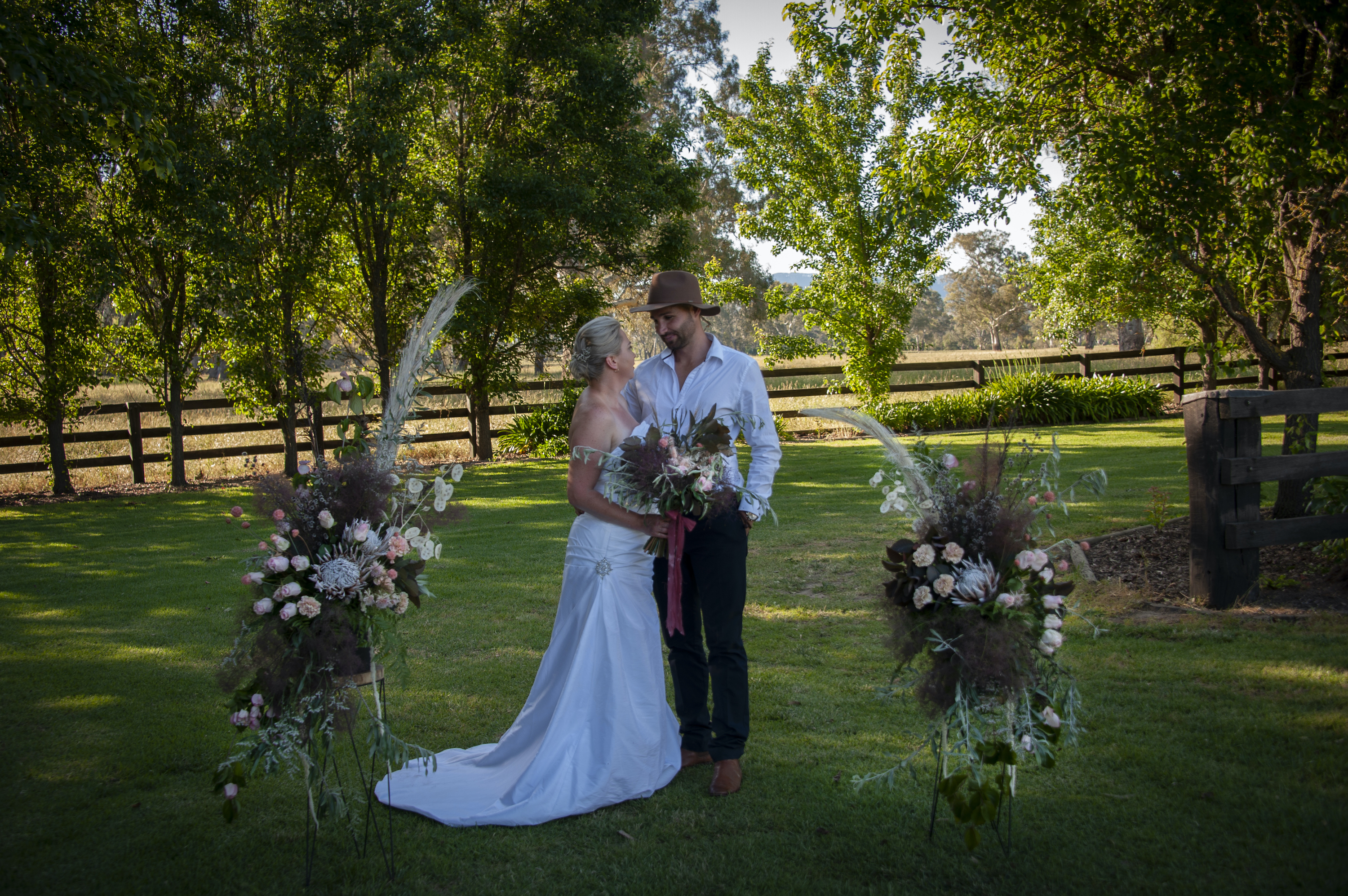 If you’re in the midst of planning an intimate or micro wedding and are looking for a boutique country venue to facilitate your dream day, then Garwen Park is the enchanting answer. This quiet farm is ideal for smaller weddings, and offers space for up to 60 of your loved ones to watch you wed on the rustic grounds. Ceremonies at Garwen Park often take place with towering river red gum trees in the background, with brides and grooms preparing for their wedding day in the historic, 80-year-old homestead.