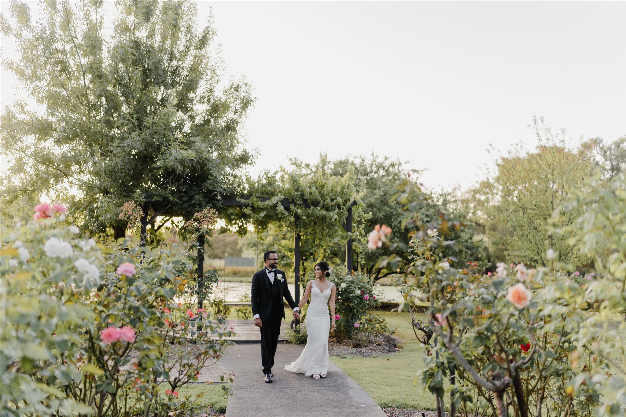 Our romantic chapel with soaring ceilings and stone floor is nestled amongst the vines and has sweeping views of the vineyard through stunning floor to ceiling windows. Our gorgeous Garden Chapel is fully covered with open sides and is situated next to a large ornamental lake and glorious rose gardens.