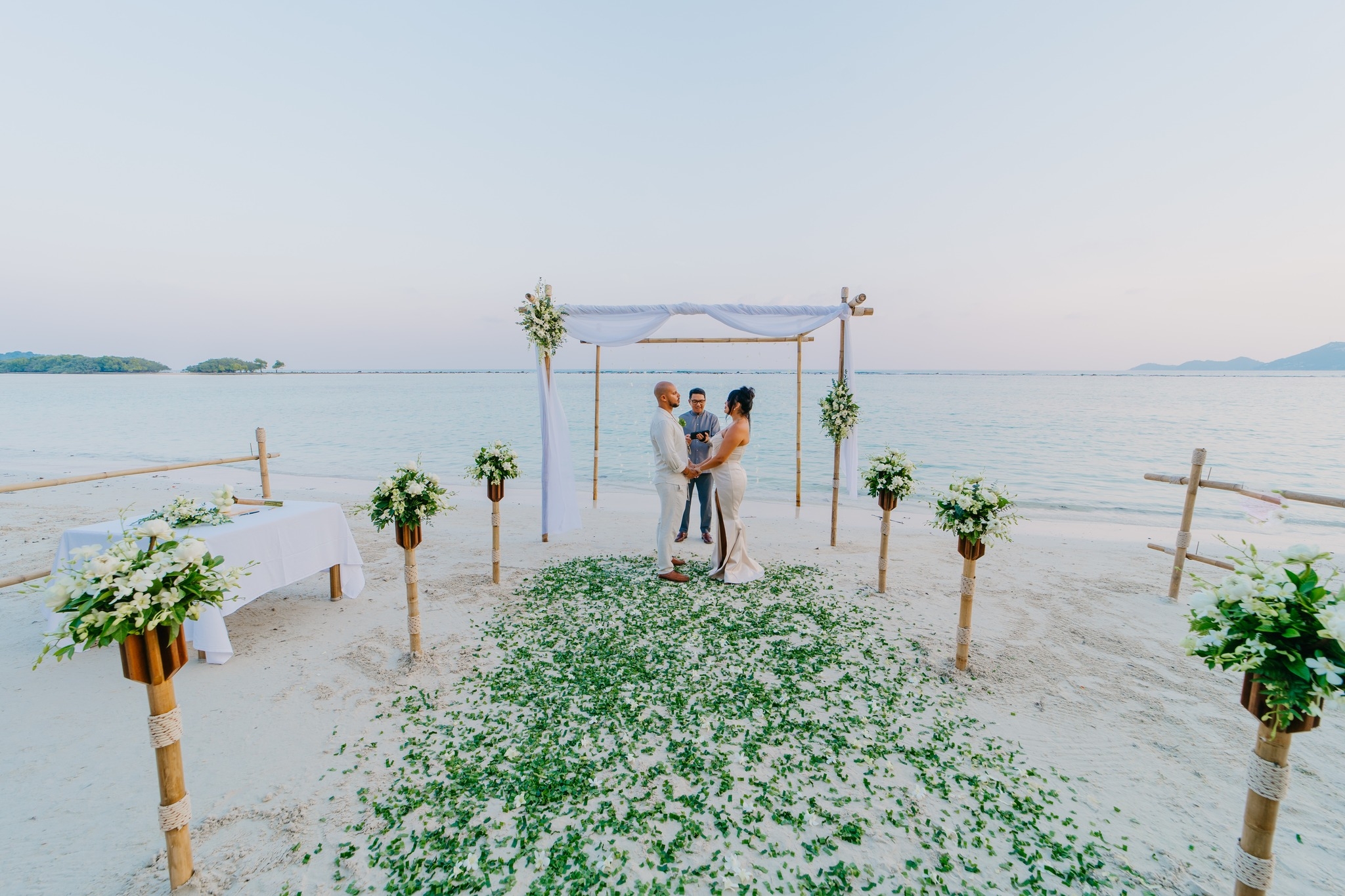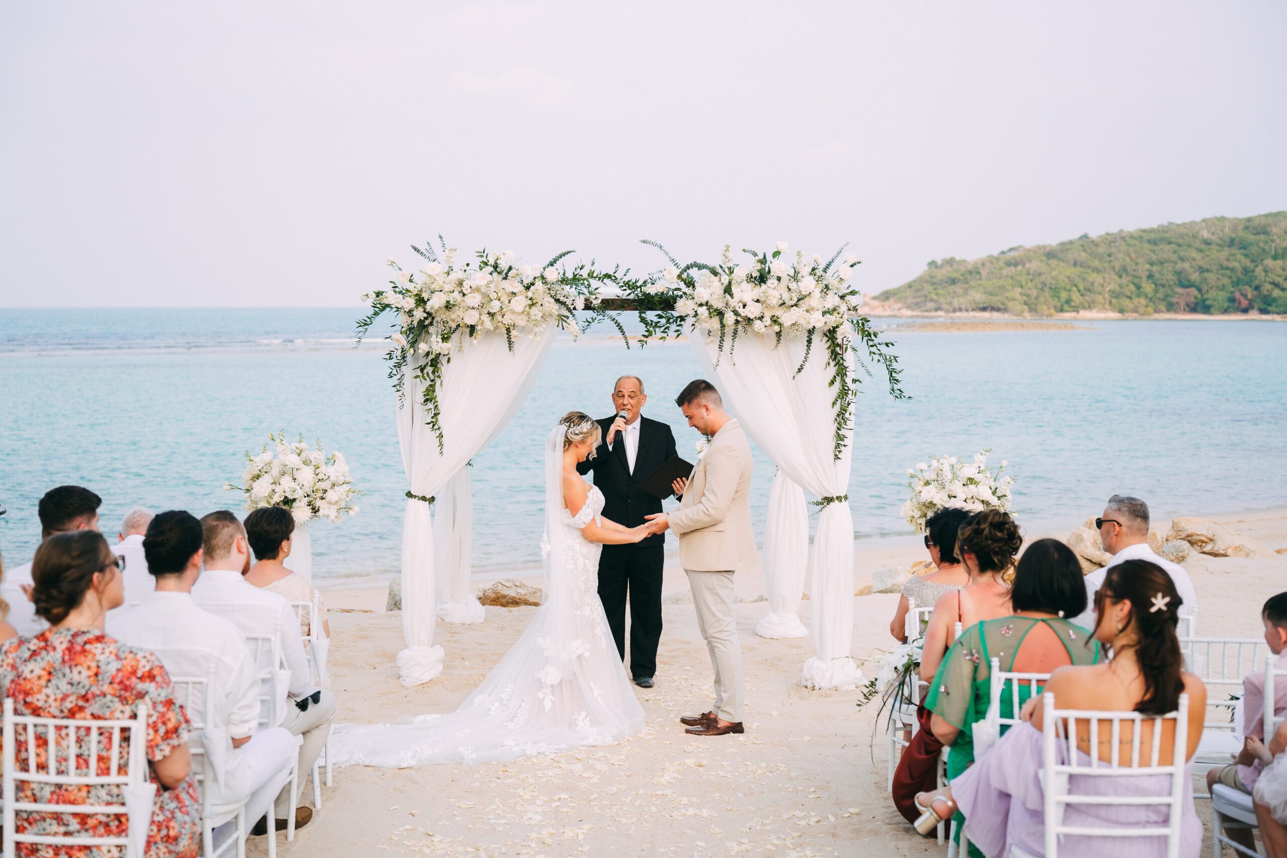Phuket is lively and energetic, great for bigger crowds and nightlife. Koh Samui, by contrast, offers a more laid-back rhythm and refined atmosphere, perfect for couples wanting a celebration that feels intimate, sophisticated, and effortlessly relaxed.