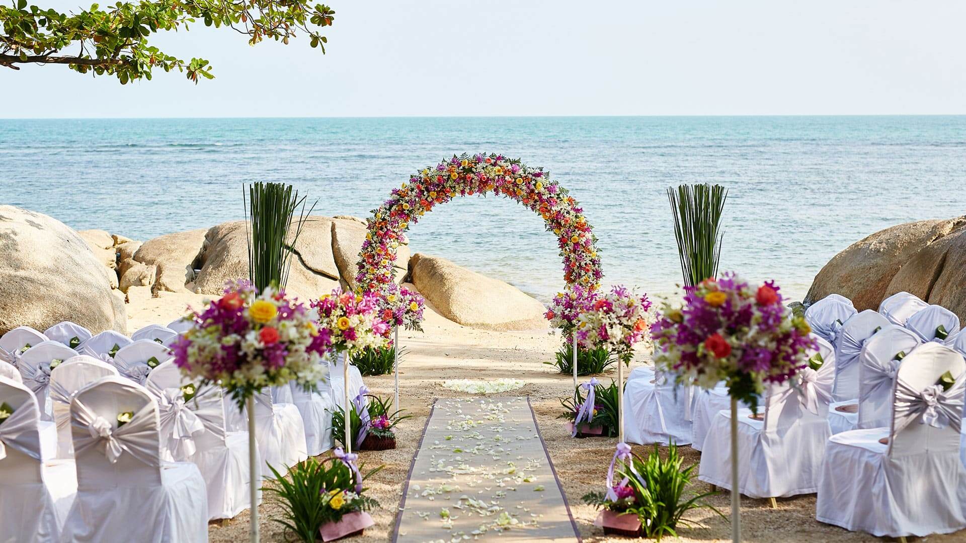 Yes. Weddings in Koh Samui can be legally recognised for foreign couples, although some paperwork is required, including a visit to your embassy in Bangkok. Many opt for a legal ceremony at home and a symbolic wedding in Thailand to simplify the process.