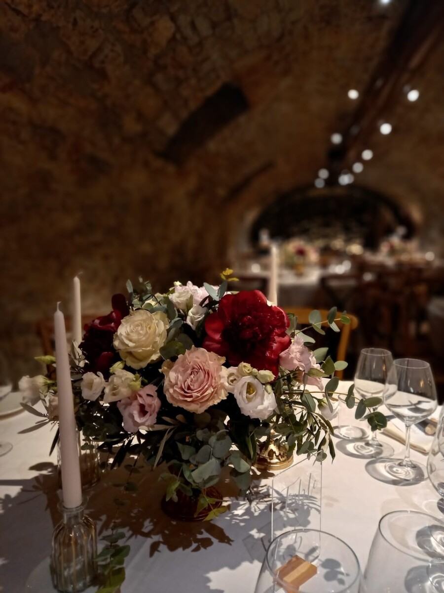 • Aperitif and wedding dinner with 5 courses (+ wedding cake) and 1 bottle of wine each 2