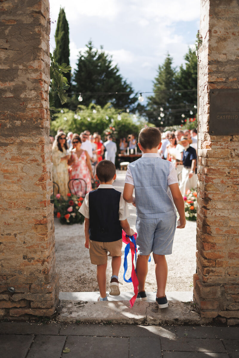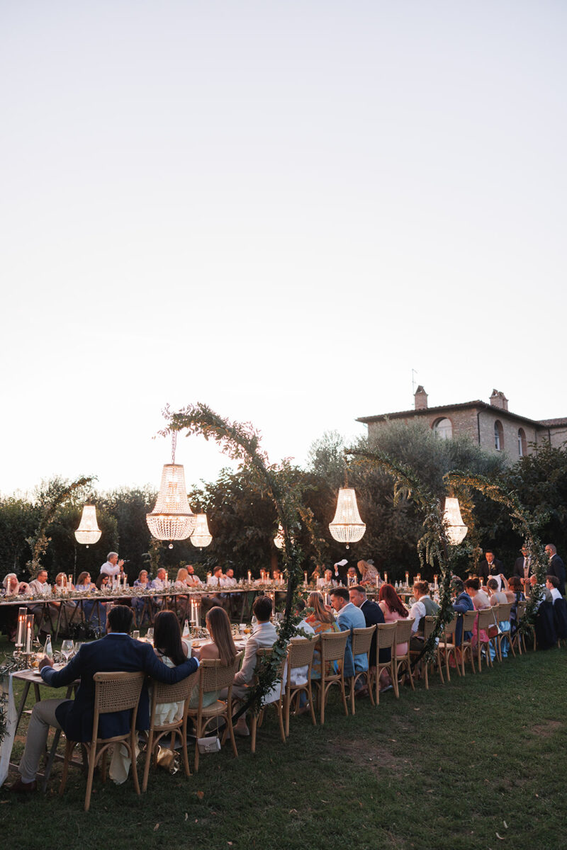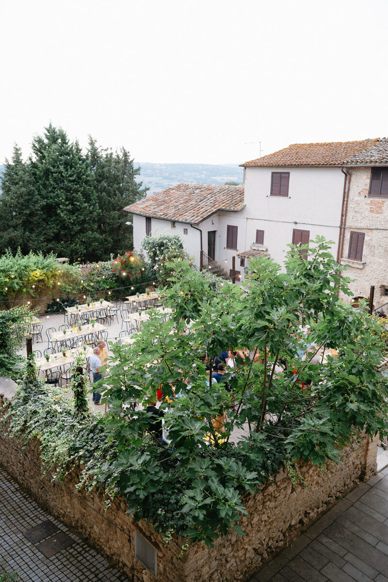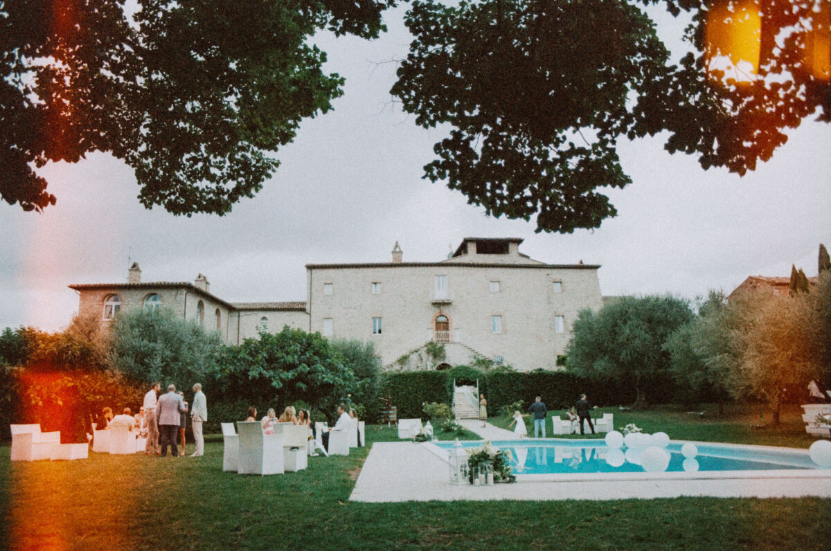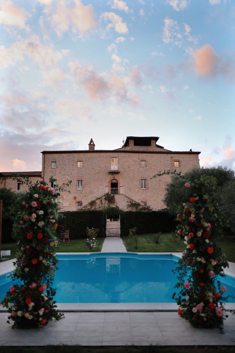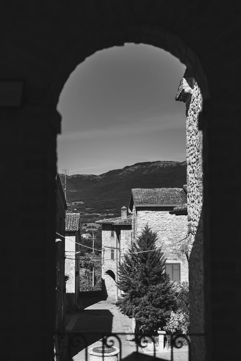 Castello di Montignano brings a sense of depth and atmosphere that’s hard to replicate, with its restored stone walls, quiet courtyards, and far-reaching Umbrian views shaping the experience. The setting feels considered rather than styled, allowing each part of the celebration to unfold naturally within the castle grounds.