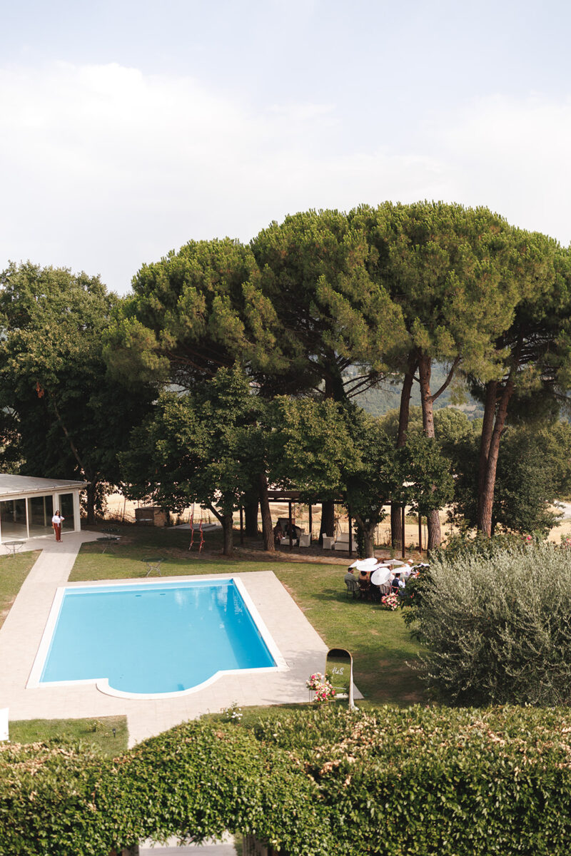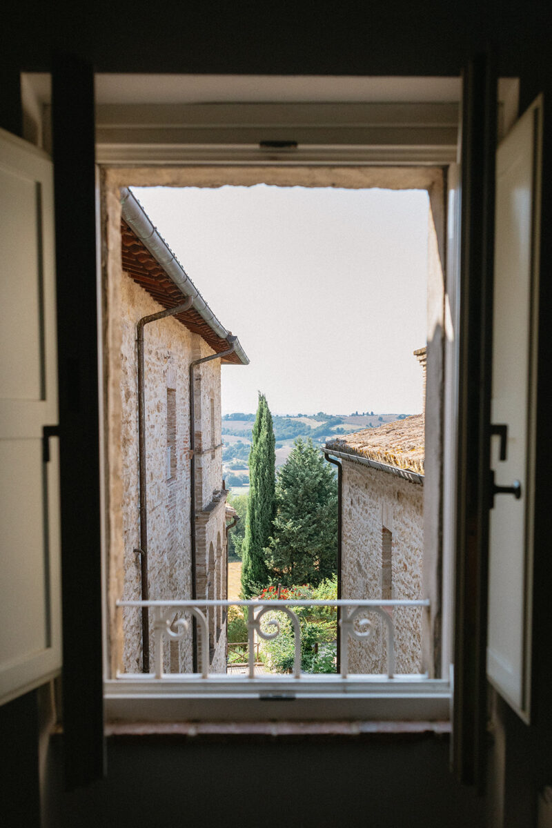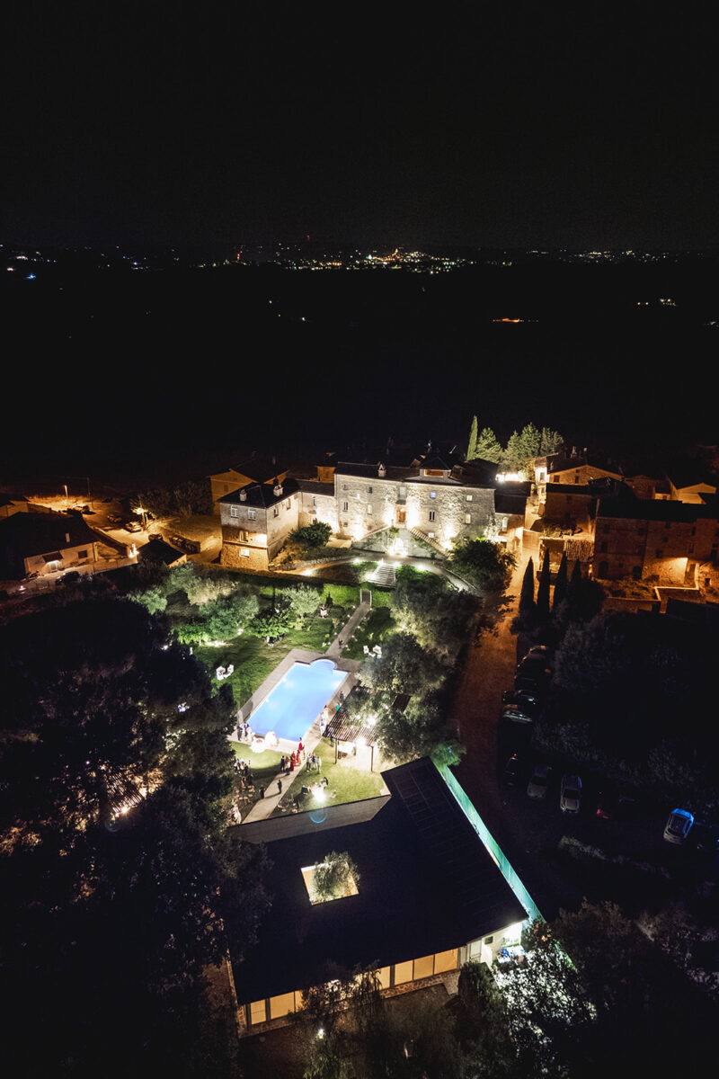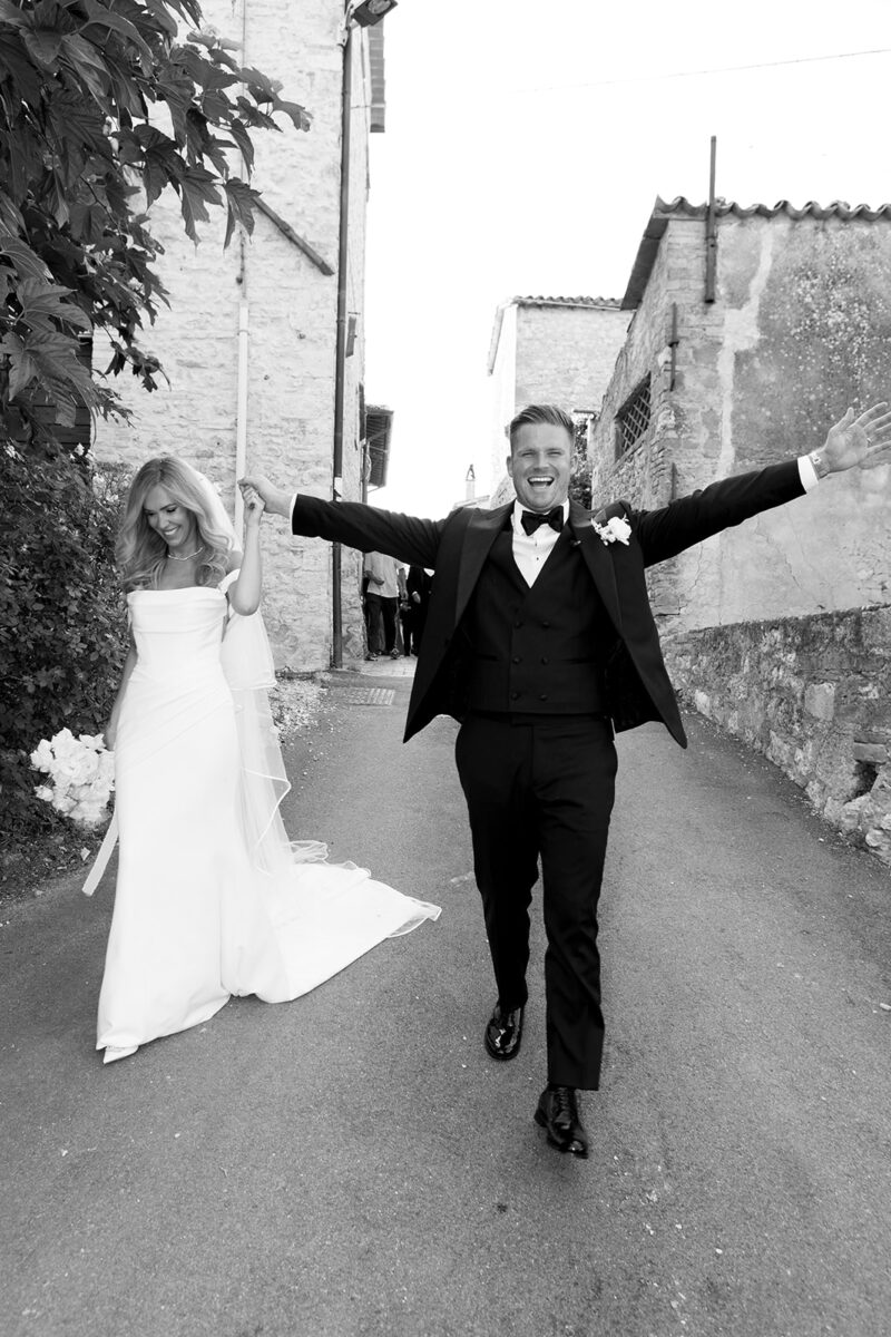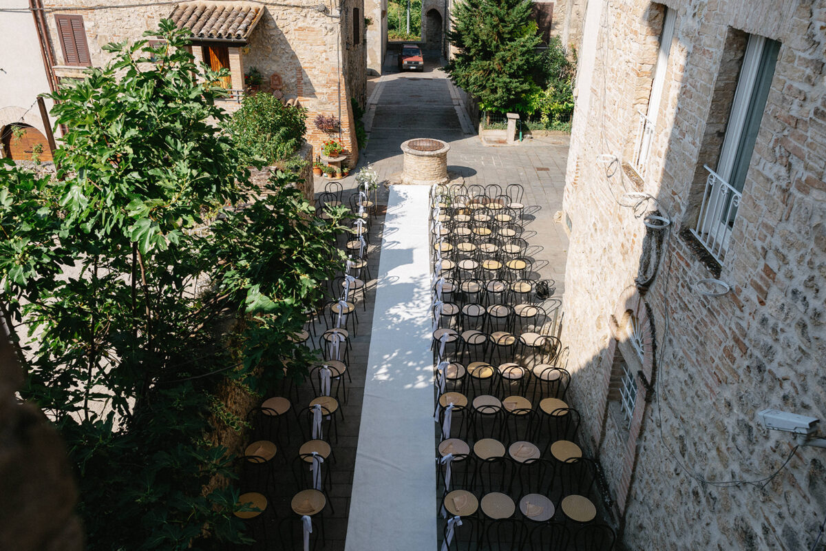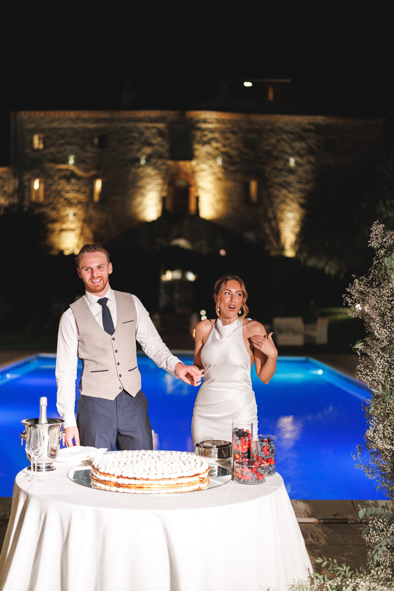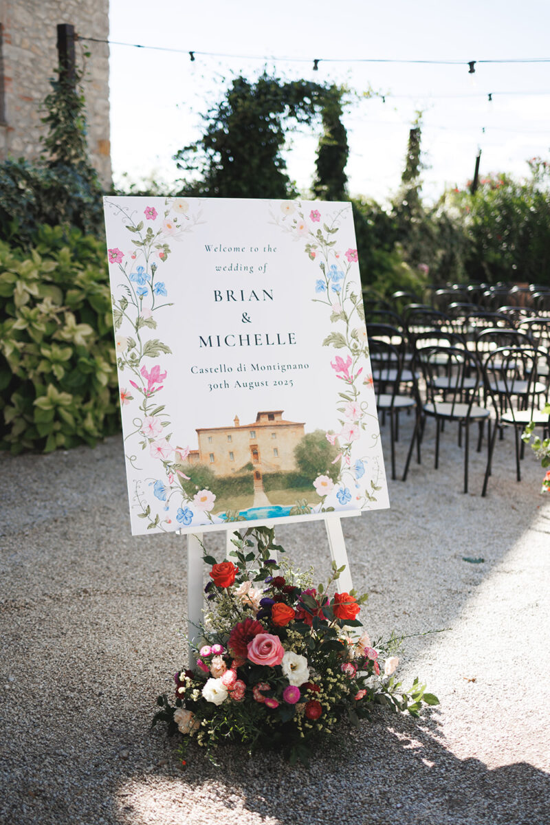 Castello di Montignano brings a sense of depth and atmosphere that’s hard to replicate, with its restored stone walls, quiet courtyards, and far-reaching Umbrian views shaping the experience. The setting feels considered rather than styled, allowing each part of the celebration to unfold naturally within the castle grounds.