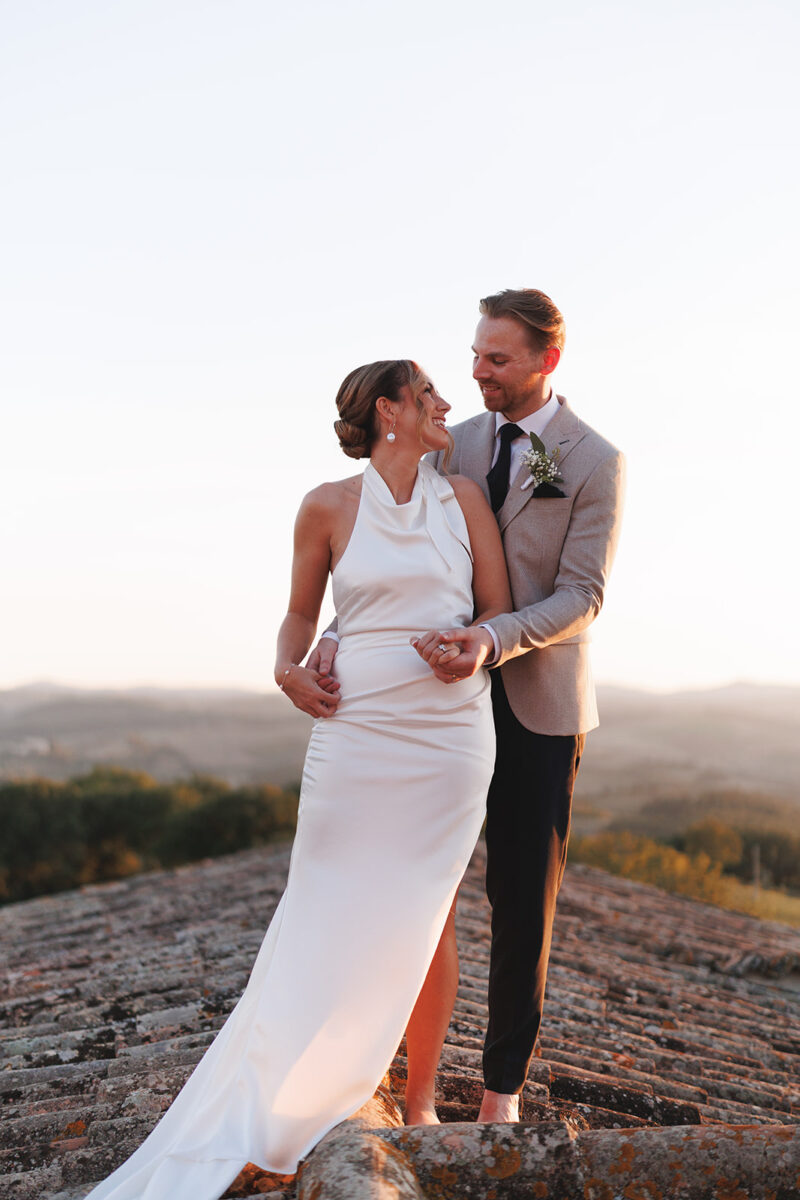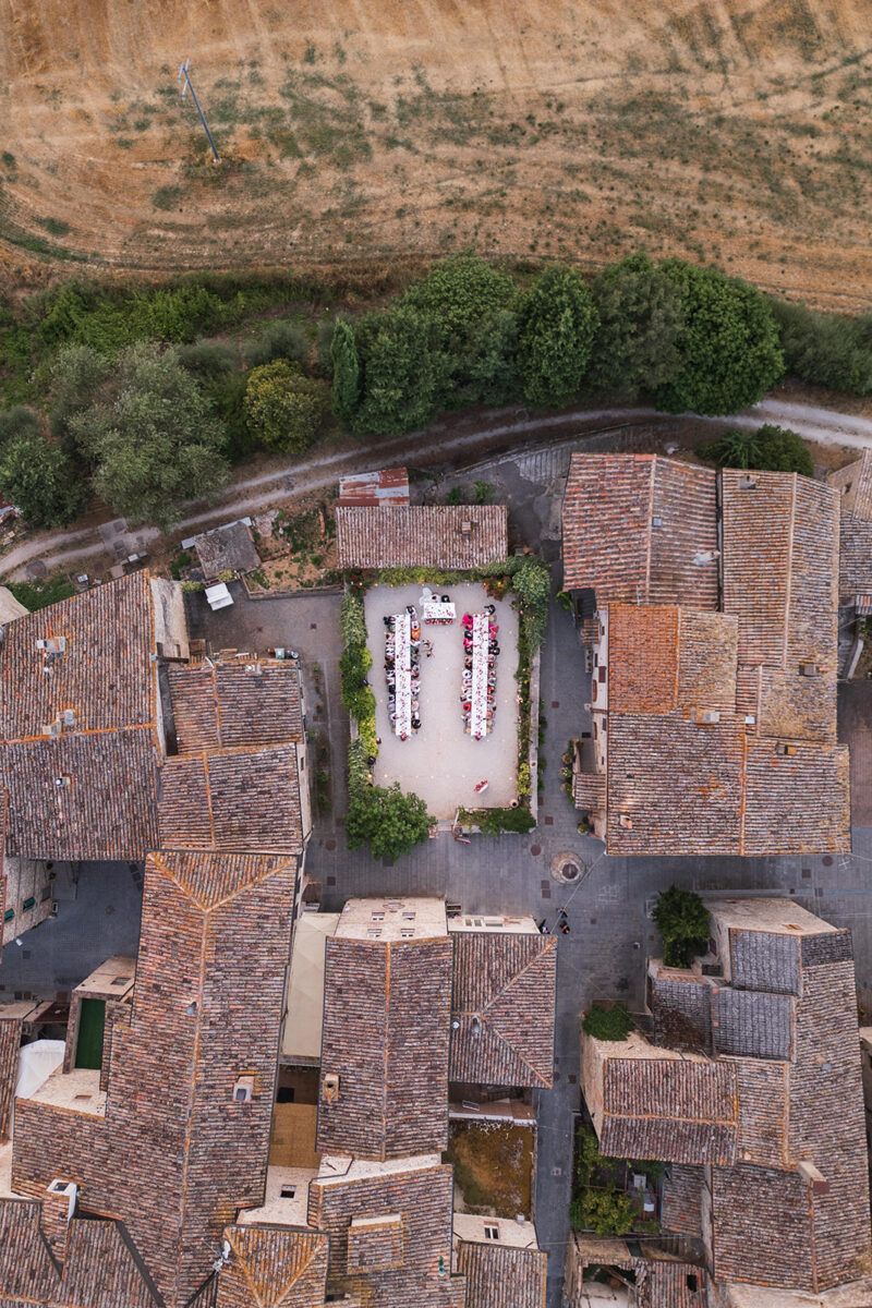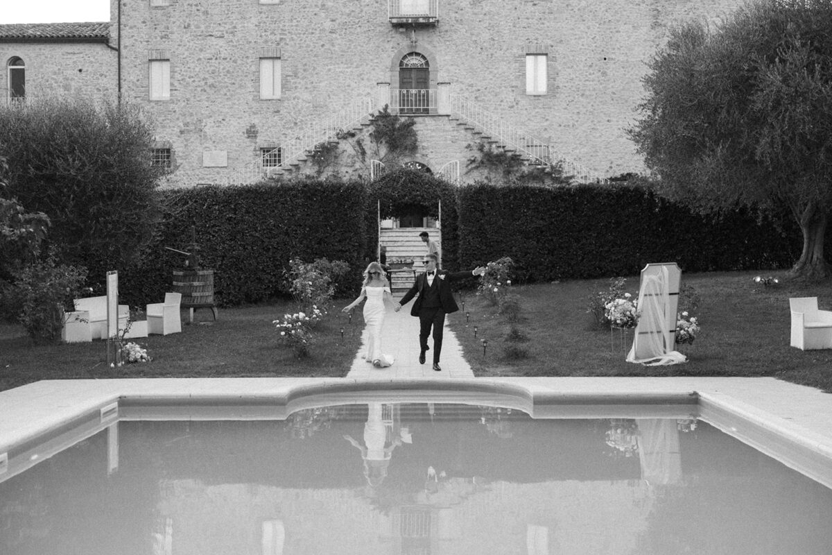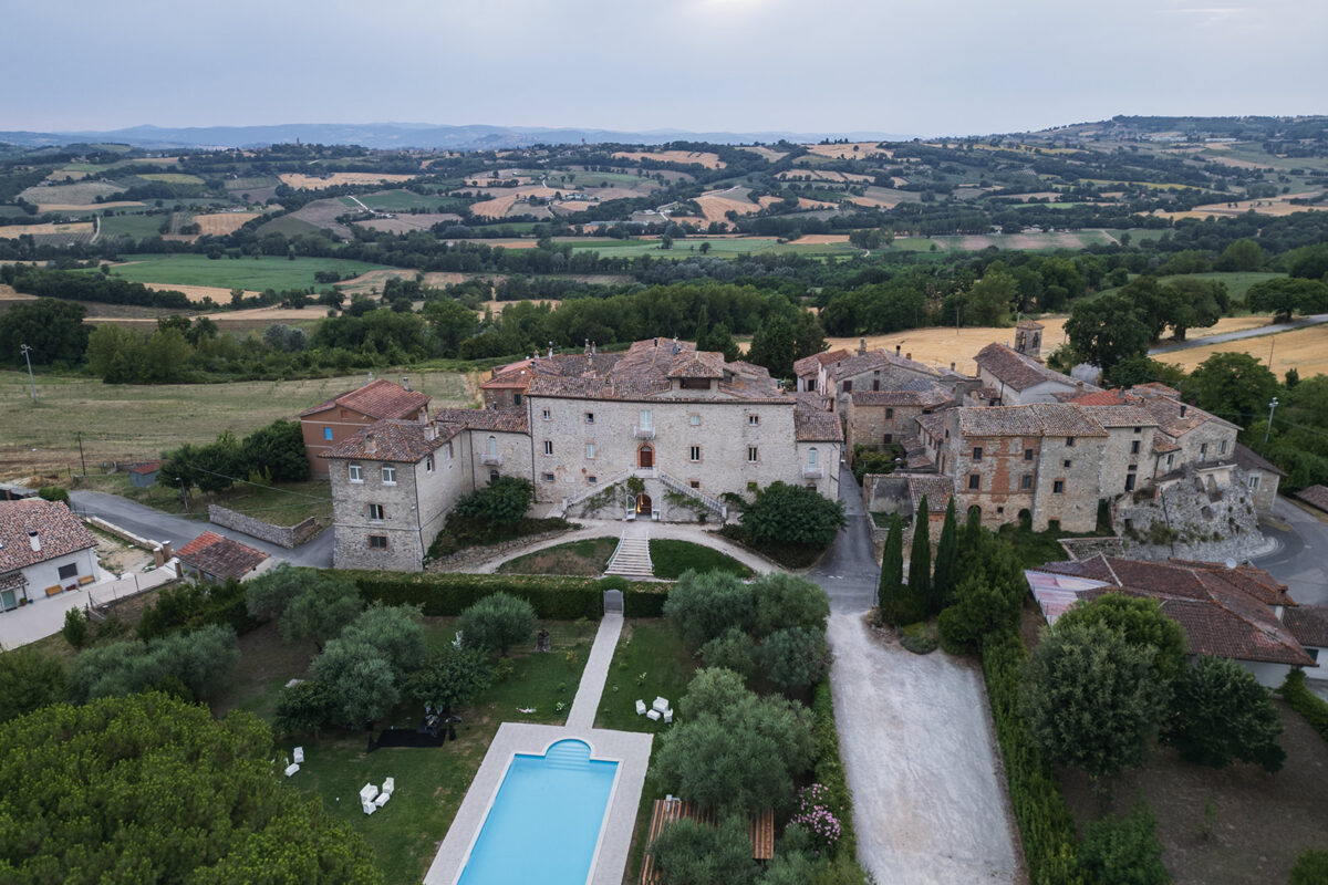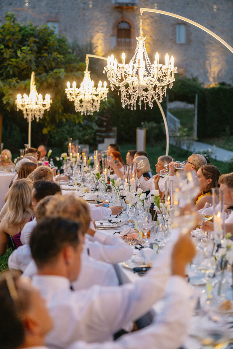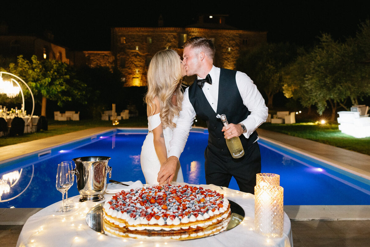 Castello di Montignano brings a sense of depth and atmosphere that’s hard to replicate, with its restored stone walls, quiet courtyards, and far-reaching Umbrian views shaping the experience. The setting feels considered rather than styled, allowing each part of the celebration to unfold naturally within the castle grounds.