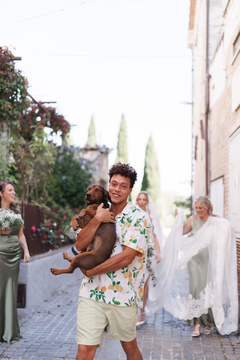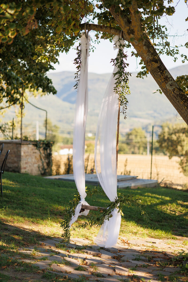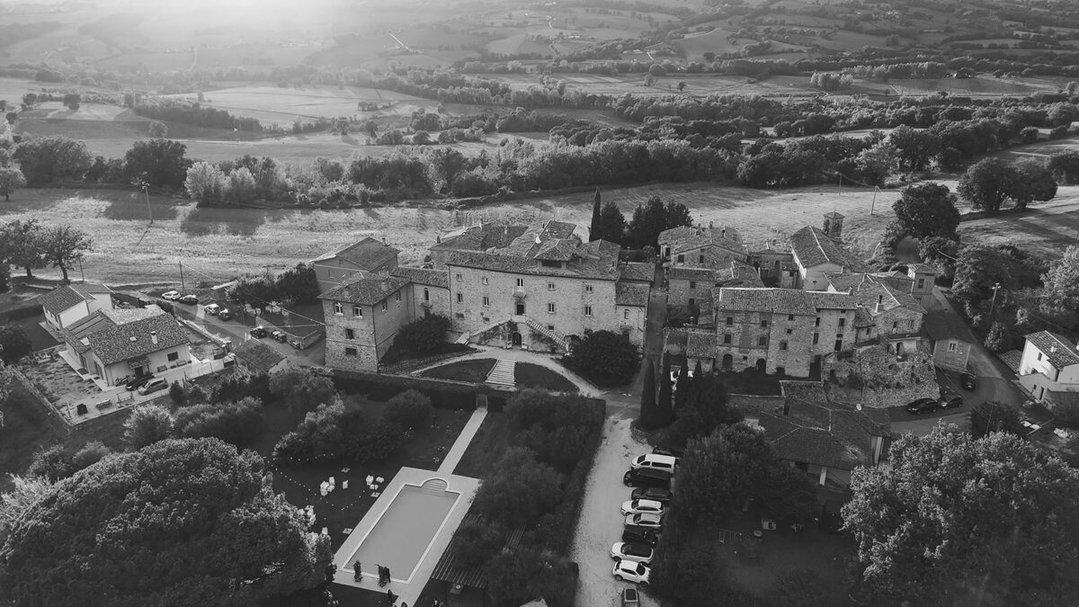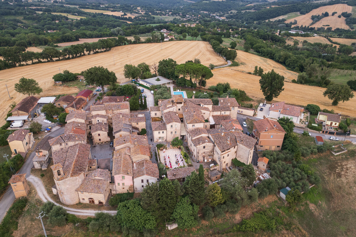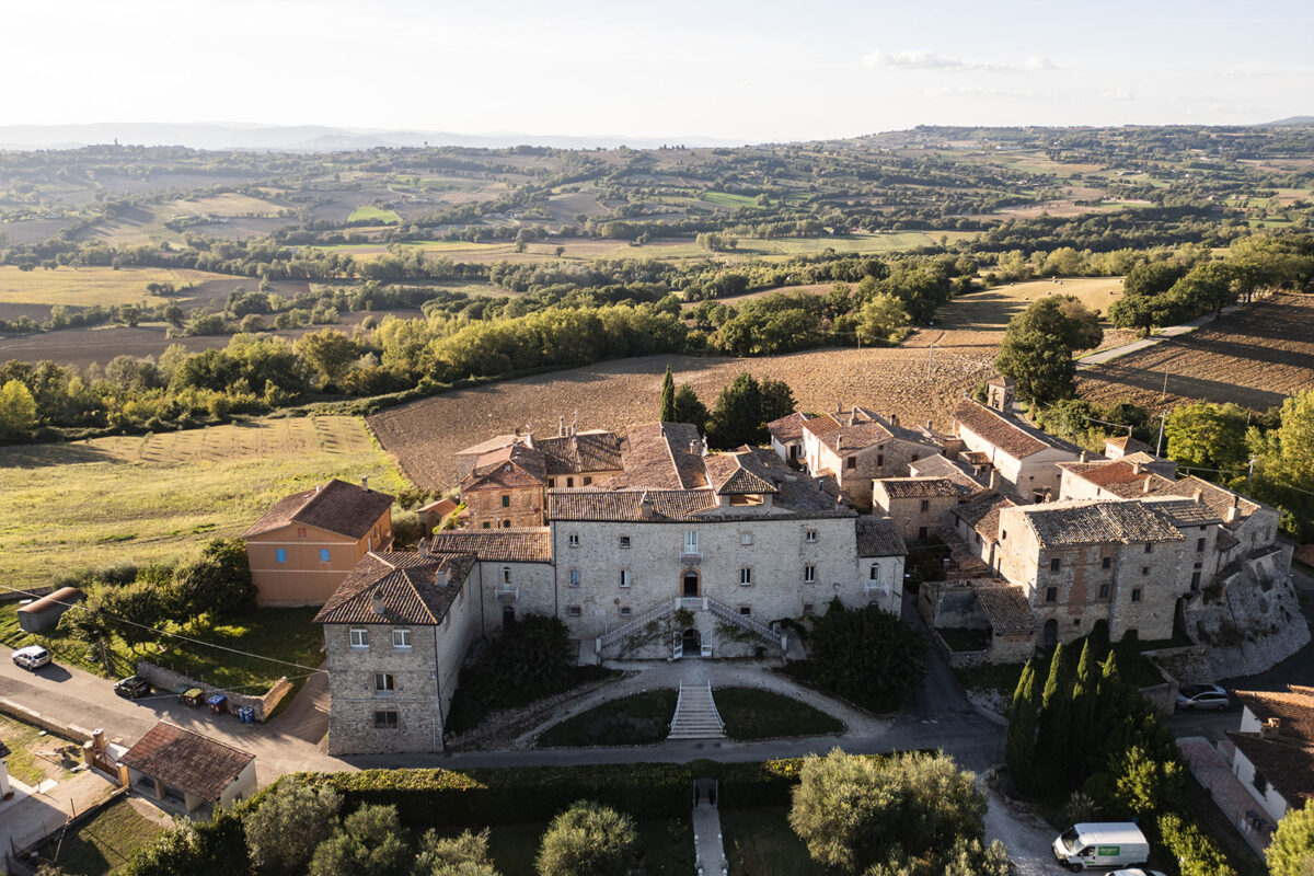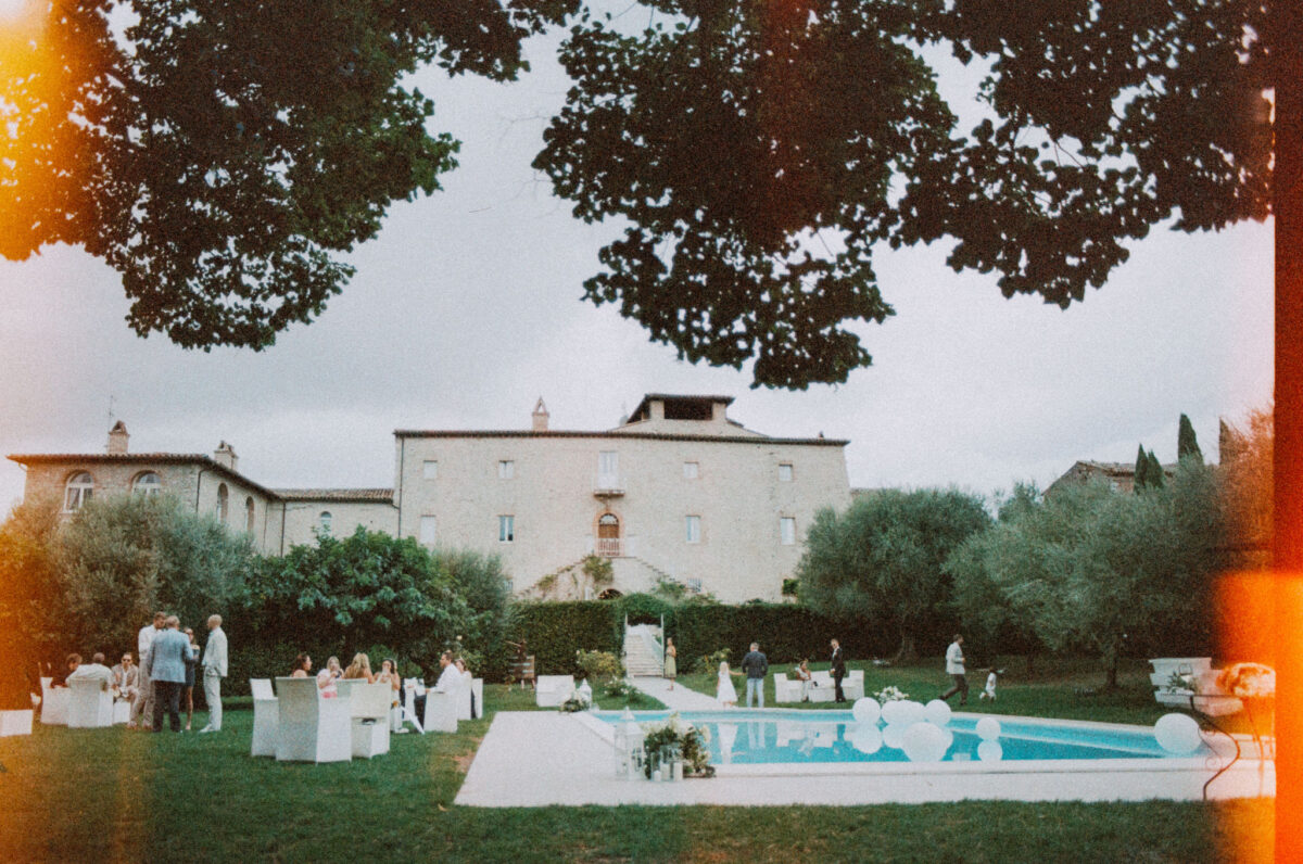 Castello di Montignano brings a sense of depth and atmosphere that’s hard to replicate, with its restored stone walls, quiet courtyards, and far-reaching Umbrian views shaping the experience. The setting feels considered rather than styled, allowing each part of the celebration to unfold naturally within the castle grounds.