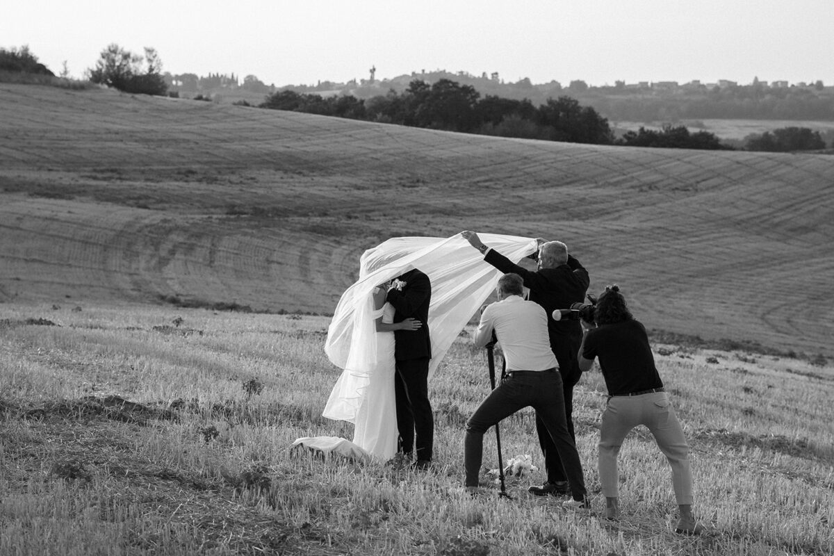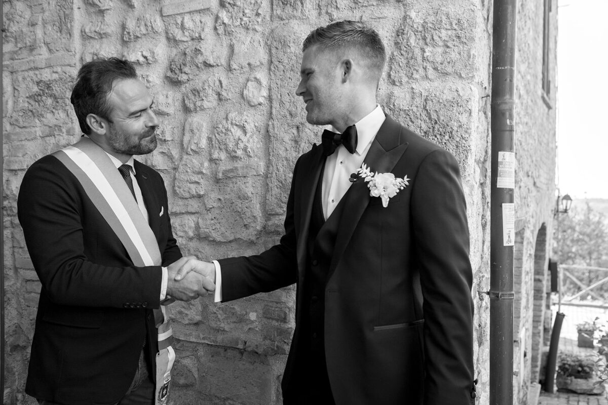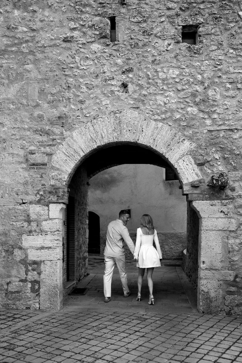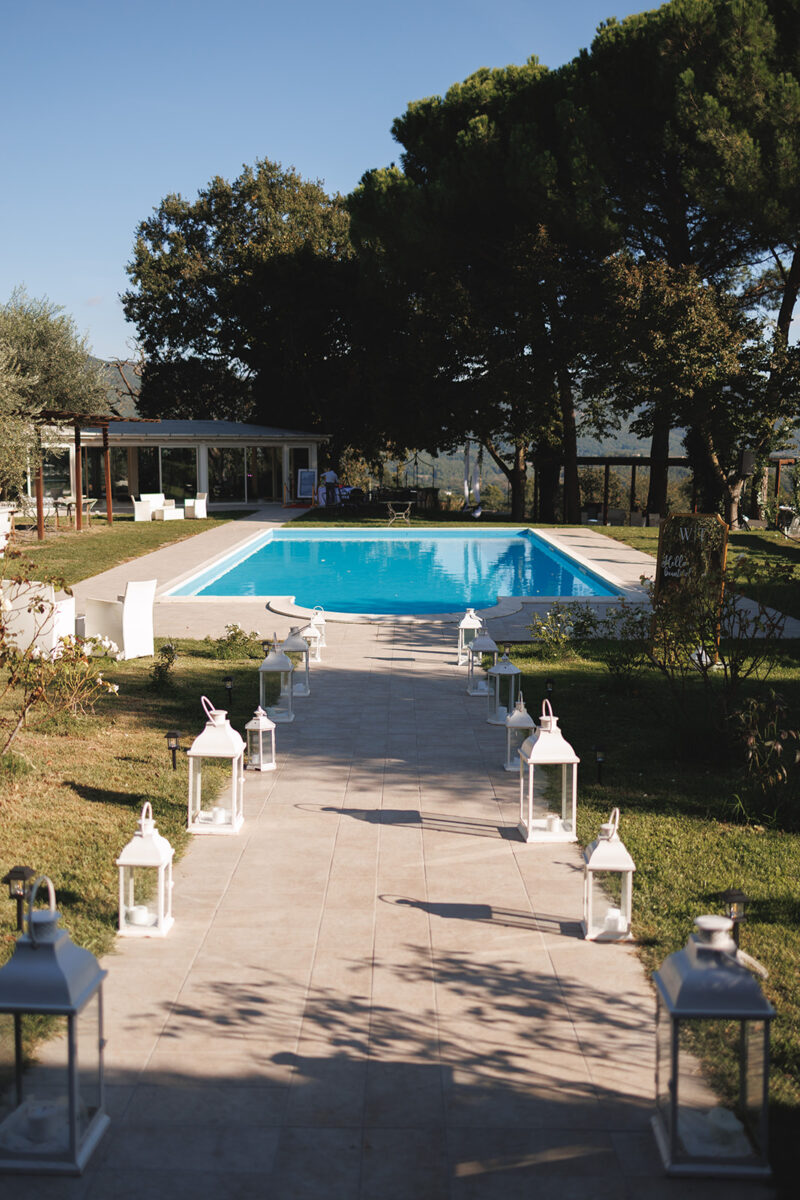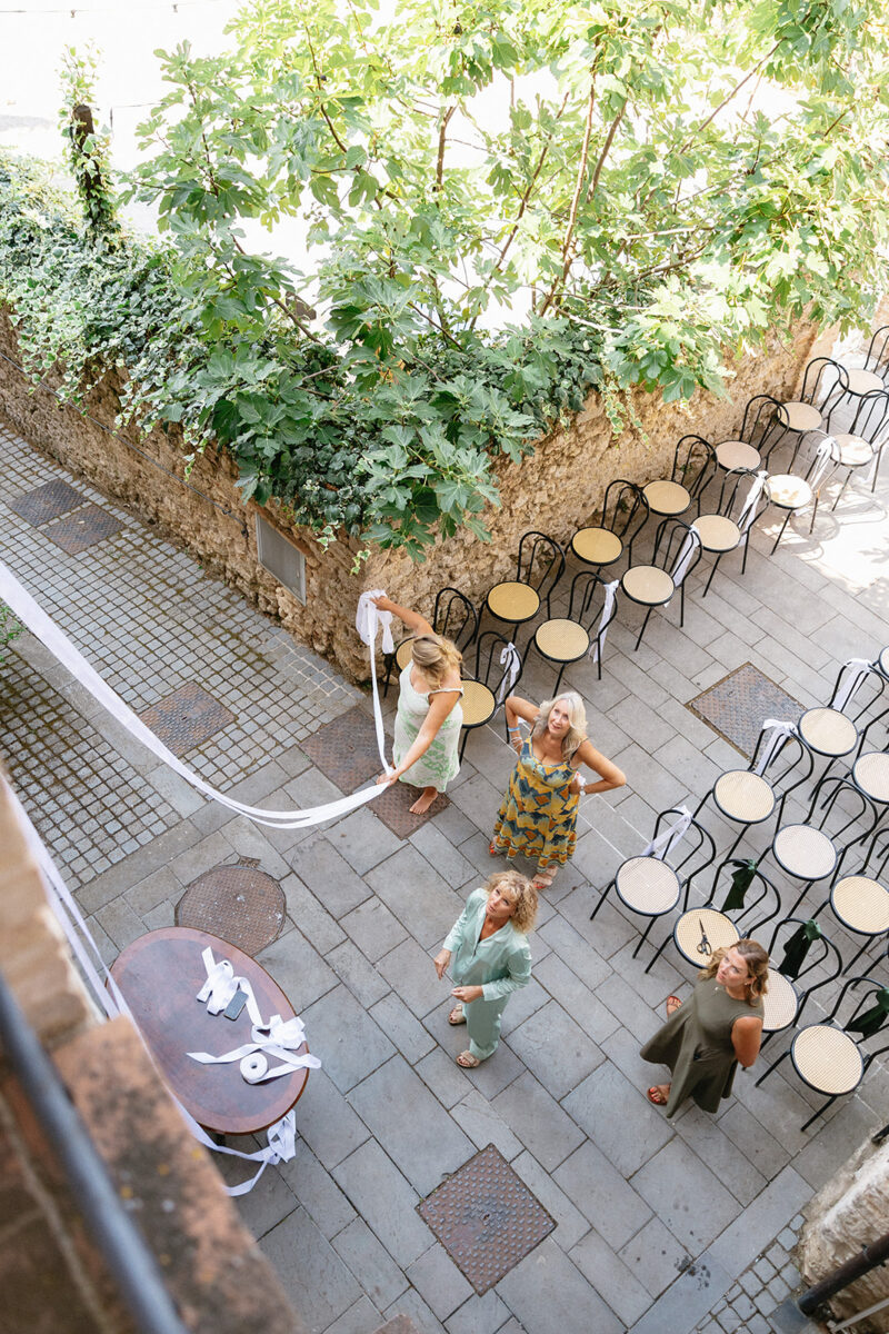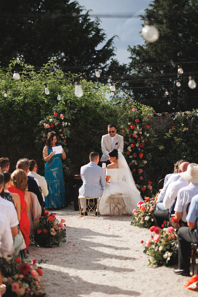 Castello di Montignano brings a sense of depth and atmosphere that’s hard to replicate, with its restored stone walls, quiet courtyards, and far-reaching Umbrian views shaping the experience. The setting feels considered rather than styled, allowing each part of the celebration to unfold naturally within the castle grounds.