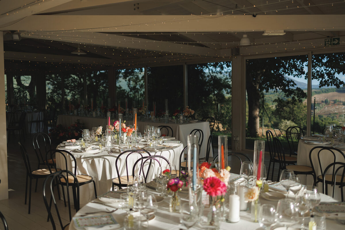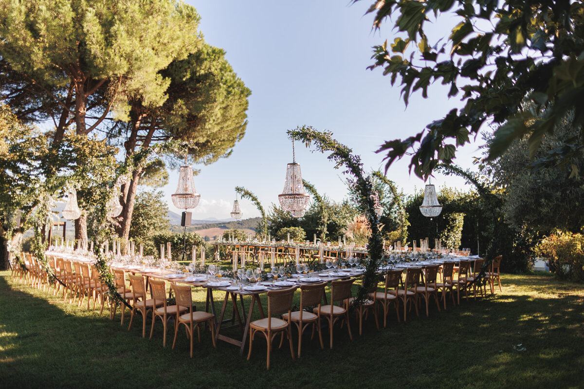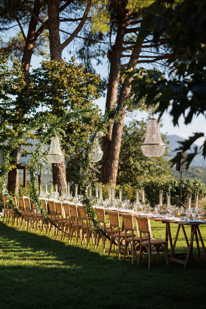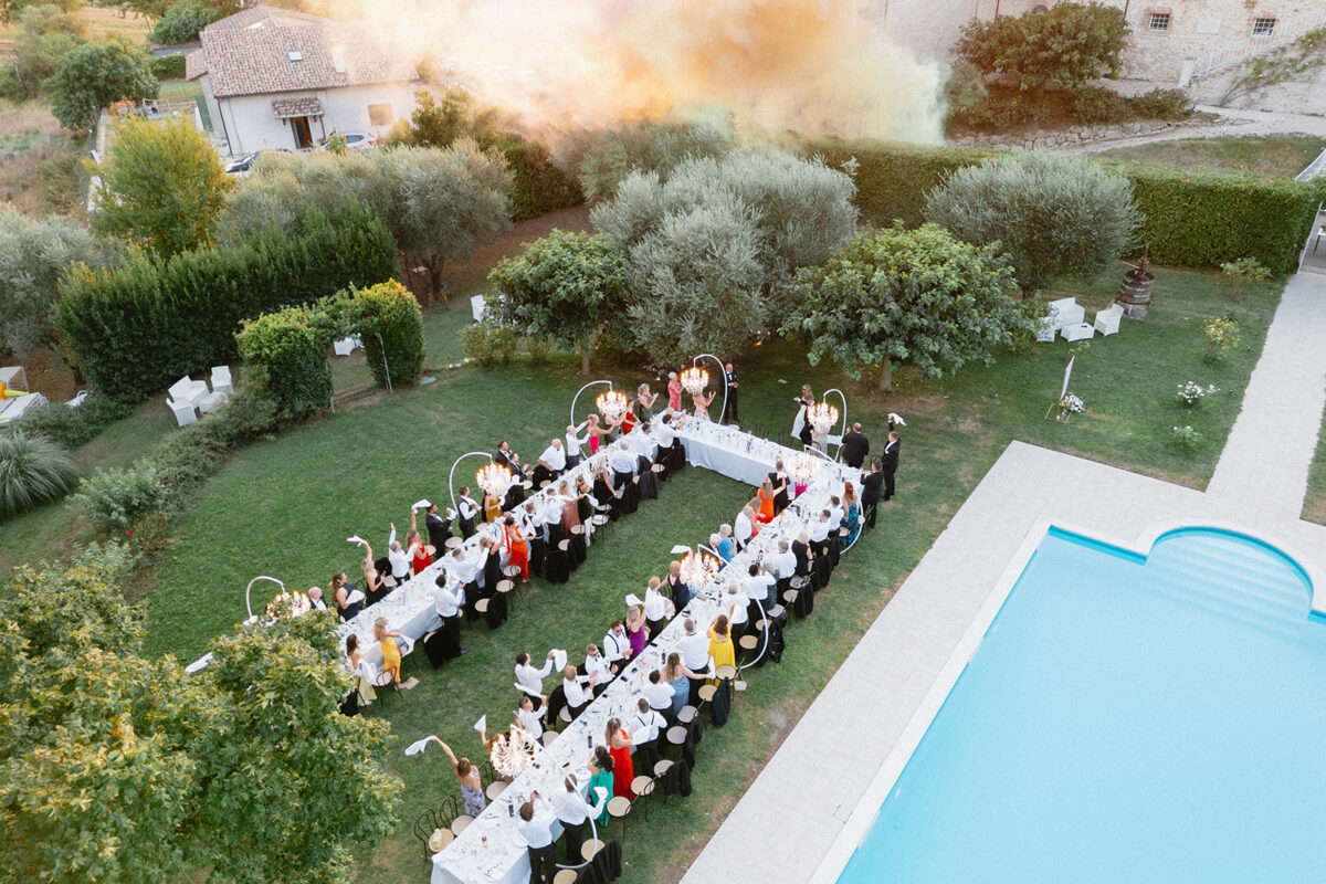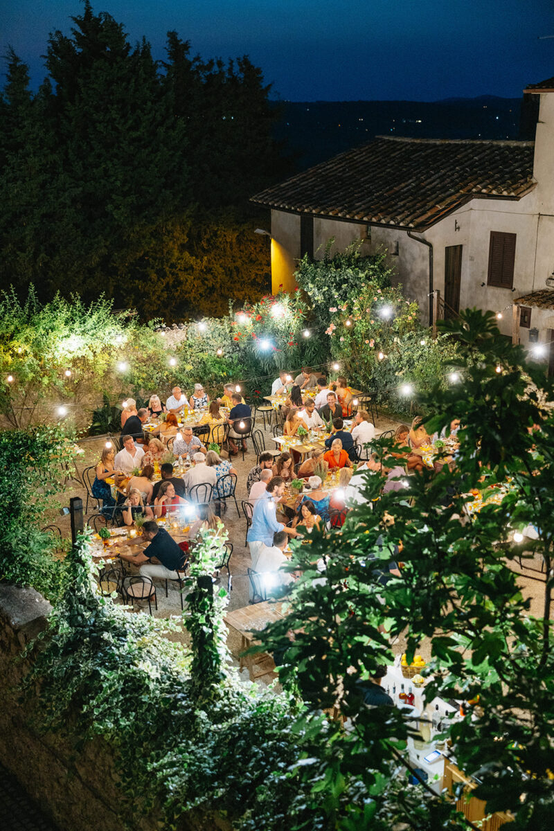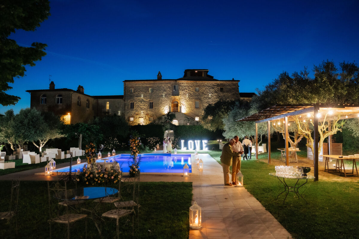 Weddings at Castello di Montignano unfold with the quiet sense of ease that you’d expect from the sweeping Italian countryside. Ceremonies can take place in the gardens or within the stone interiors, each setting carrying its own atmosphere, before guests move into an aperitif that lingers into the evening. From there, the celebration settles into a beautifully paced reception, with each part of the day flowing naturally, thanks to the expert support of the in-house team, creating an experience that lets you savor and appreciate every moment.