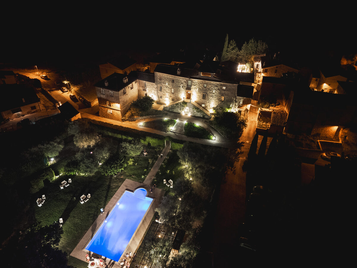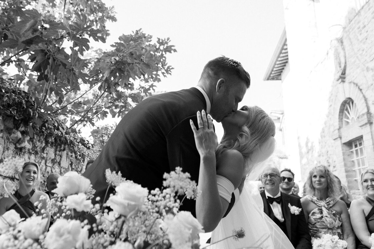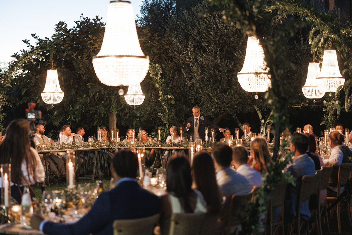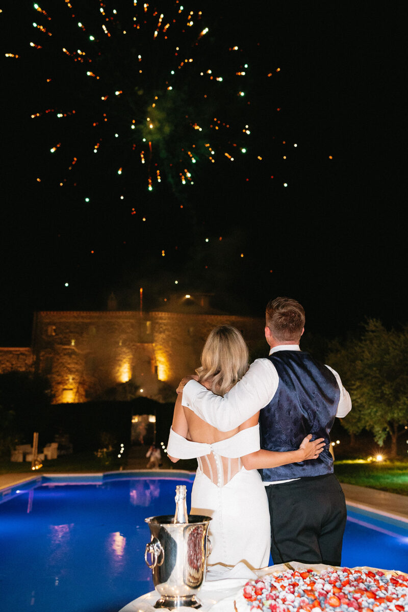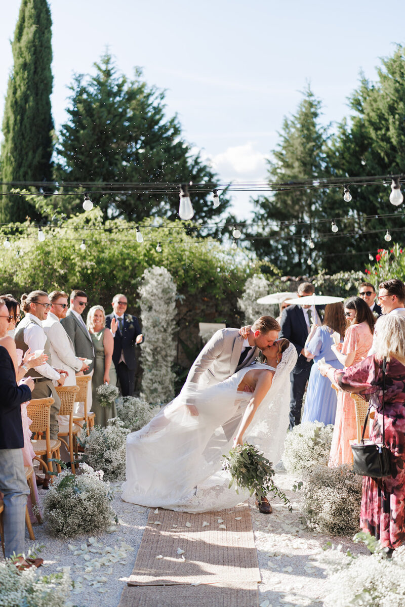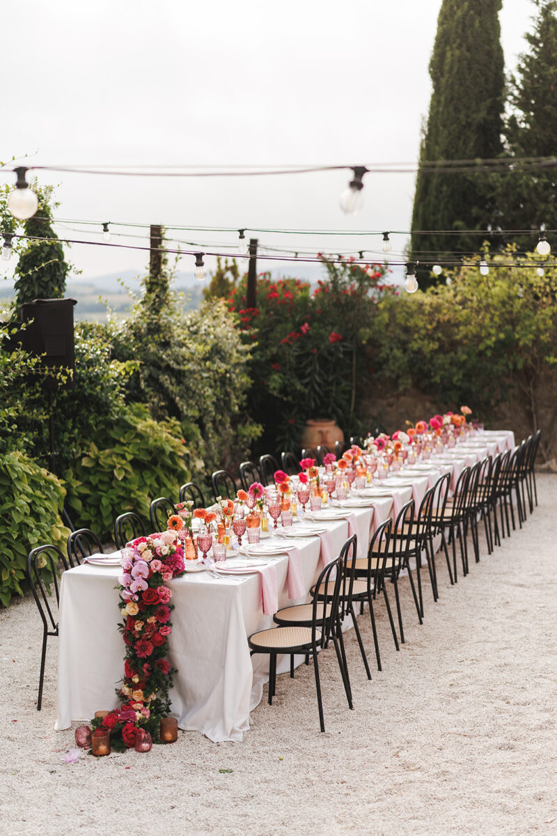 Weddings at Castello di Montignano unfold with the quiet sense of ease that you’d expect from the sweeping Italian countryside. Ceremonies can take place in the gardens or within the stone interiors, each setting carrying its own atmosphere, before guests move into an aperitif that lingers into the evening. From there, the celebration settles into a beautifully paced reception, with each part of the day flowing naturally, thanks to the expert support of the in-house team, creating an experience that lets you savor and appreciate every moment.