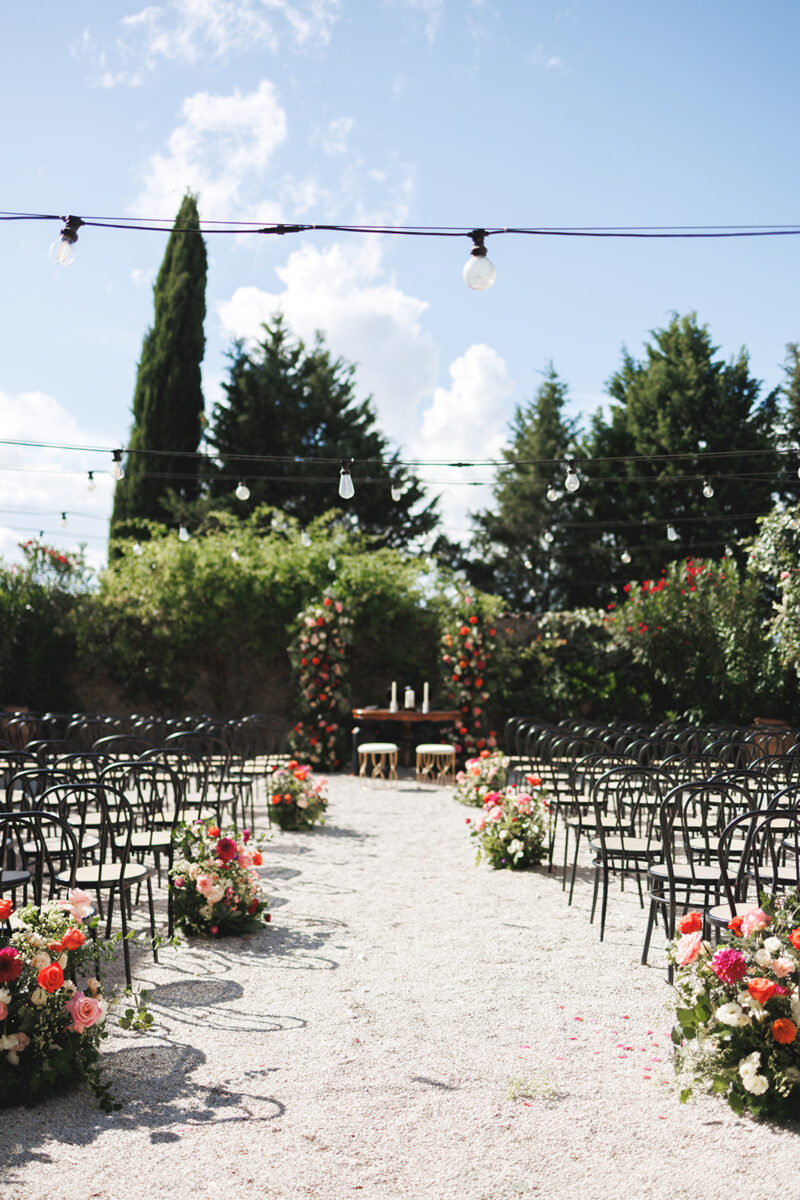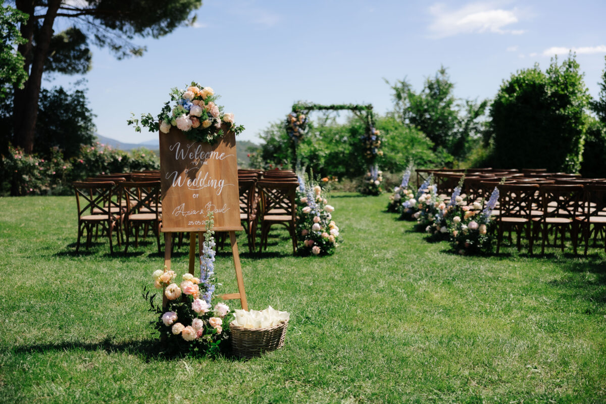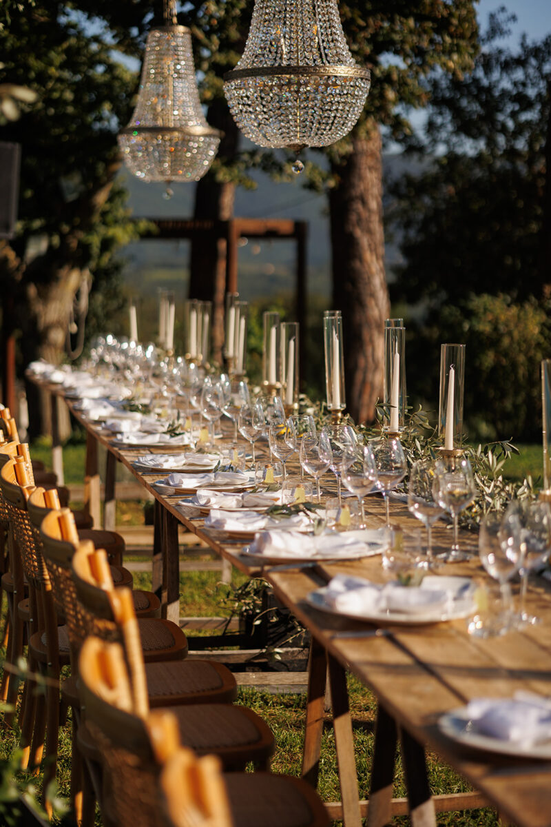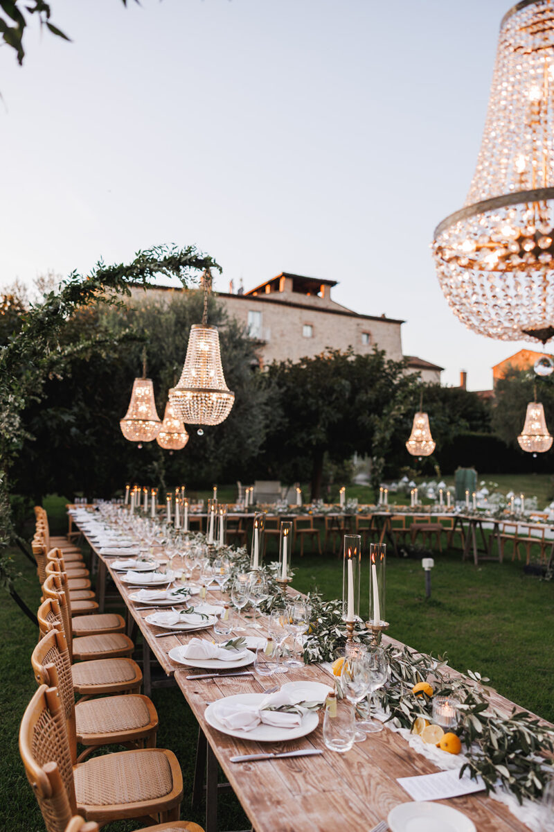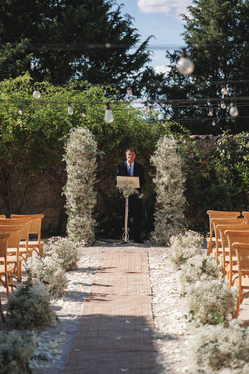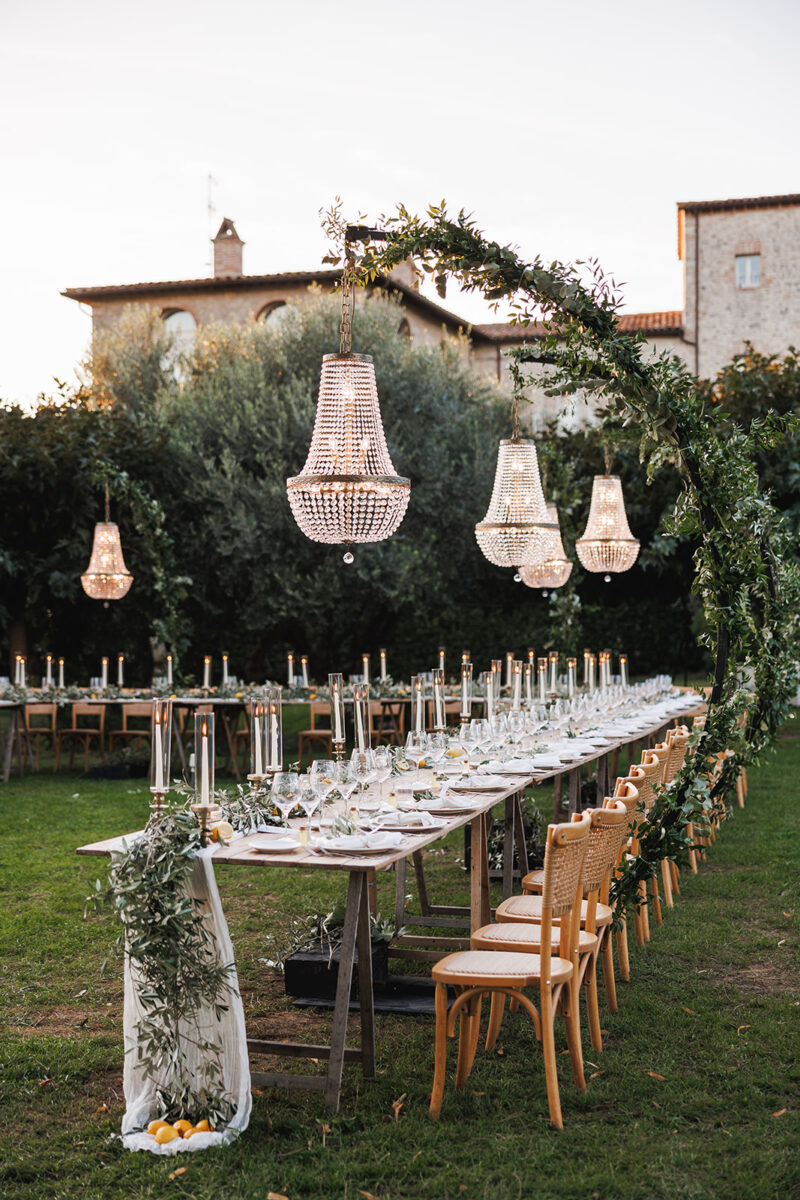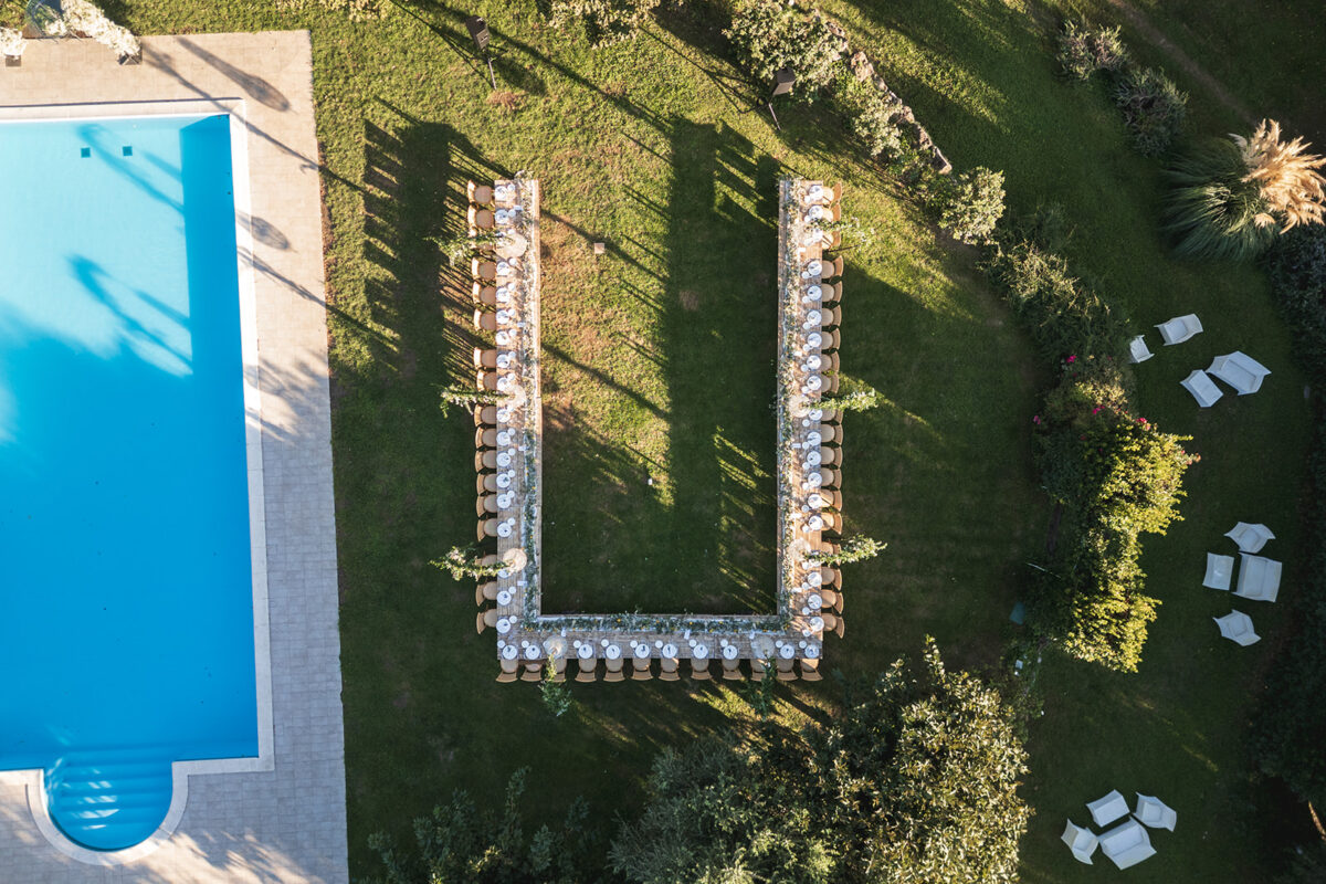 Weddings at Castello di Montignano unfold with the quiet sense of ease that you’d expect from the sweeping Italian countryside. Ceremonies can take place in the gardens or within the stone interiors, each setting carrying its own atmosphere, before guests move into an aperitif that lingers into the evening. From there, the celebration settles into a beautifully paced reception, with each part of the day flowing naturally, thanks to the expert support of the in-house team, creating an experience that lets you savor and appreciate every moment.