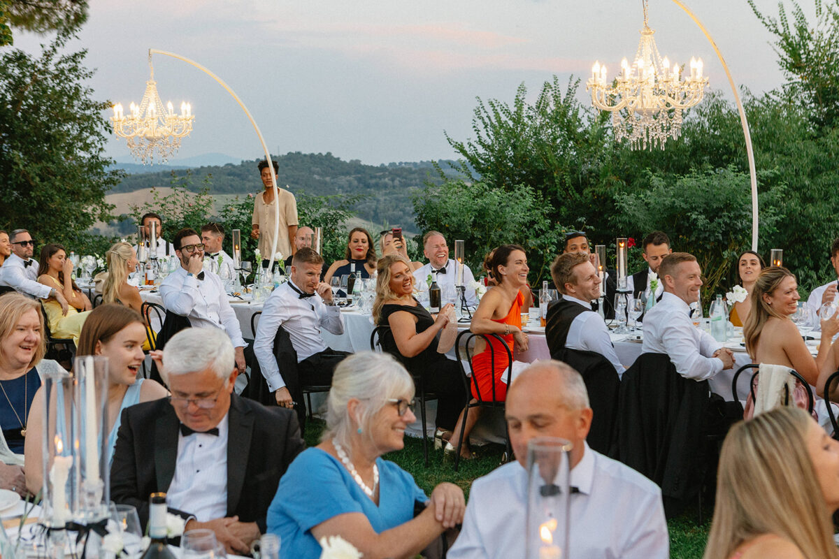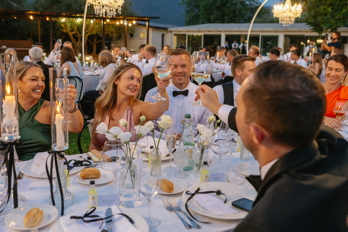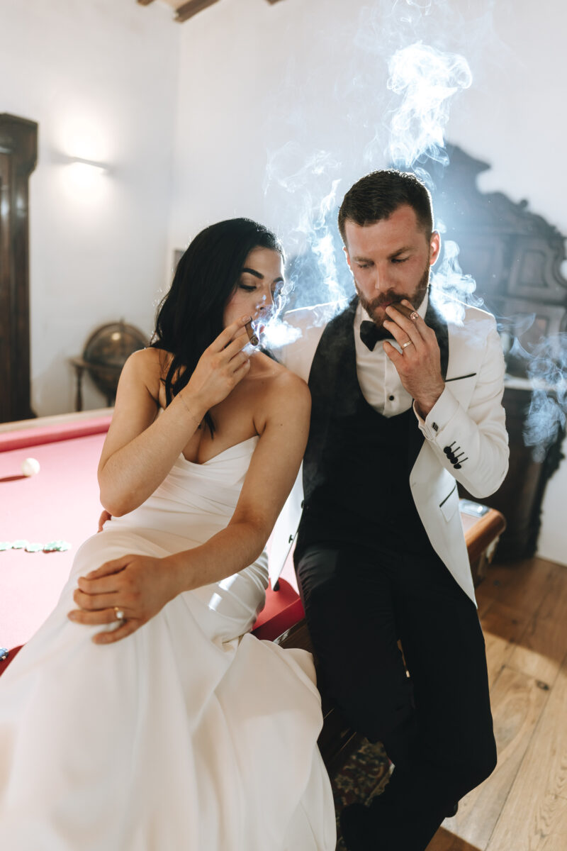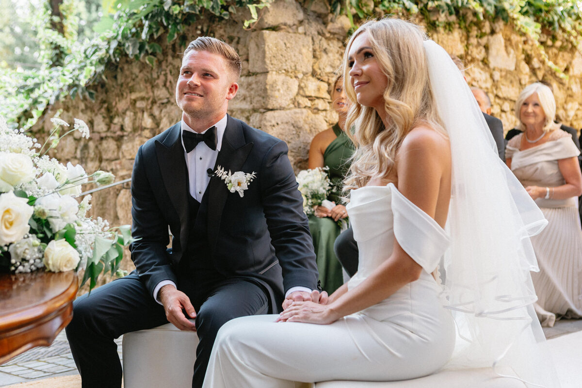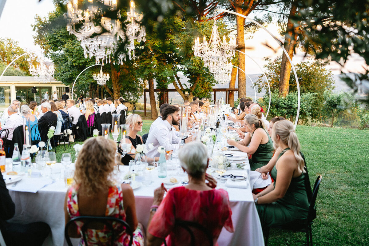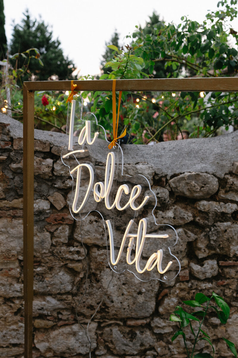 Weddings at Castello di Montignano unfold with the quiet sense of ease that you’d expect from the sweeping Italian countryside. Ceremonies can take place in the gardens or within the stone interiors, each setting carrying its own atmosphere, before guests move into an aperitif that lingers into the evening. From there, the celebration settles into a beautifully paced reception, with each part of the day flowing naturally, thanks to the expert support of the in-house team, creating an experience that lets you savor and appreciate every moment.