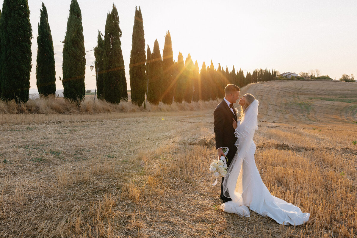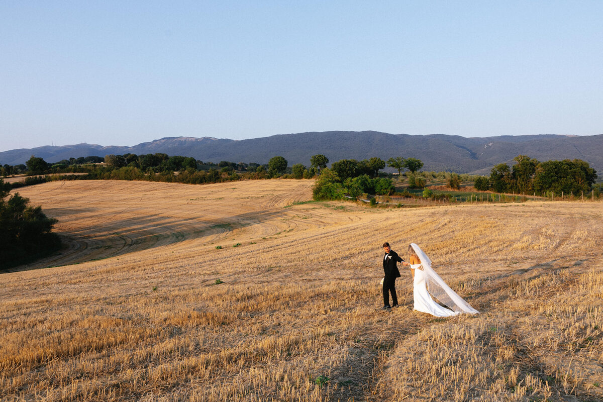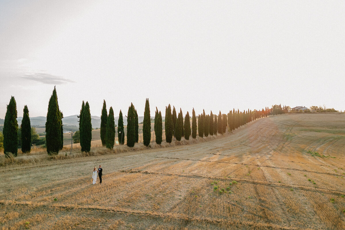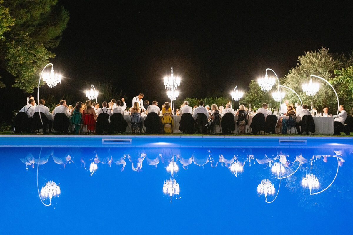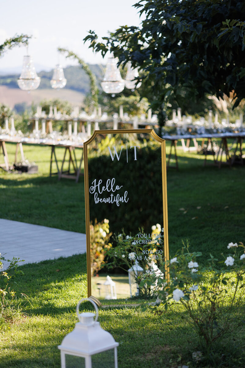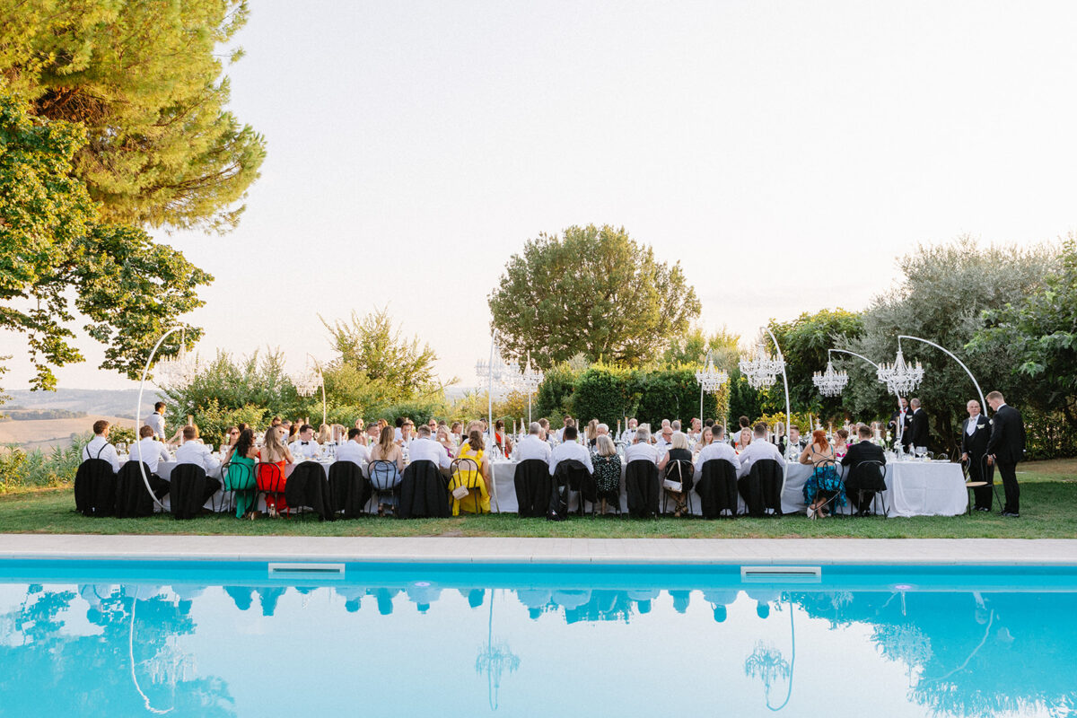 Weddings at Castello di Montignano unfold with the quiet sense of ease that you’d expect from the sweeping Italian countryside. Ceremonies can take place in the gardens or within the stone interiors, each setting carrying its own atmosphere, before guests move into an aperitif that lingers into the evening. From there, the celebration settles into a beautifully paced reception, with each part of the day flowing naturally, thanks to the expert support of the in-house team, creating an experience that lets you savor and appreciate every moment.