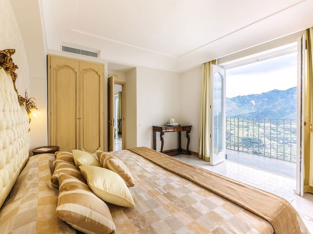 Villa Fraulo offers on-site accommodation across 26 elegant rooms and suites, many with balconies or terraces overlooking the Amalfi Coast. Each room combines classic Italian design with modern comforts, creating a relaxing retreat for couples and their guests. Staying at the villa allows you to enjoy the full wedding experience, from sunrise views to evening celebrations, all wrapped in the romance of the Amalfi Coast.