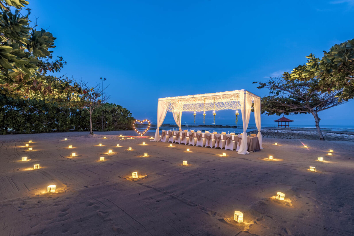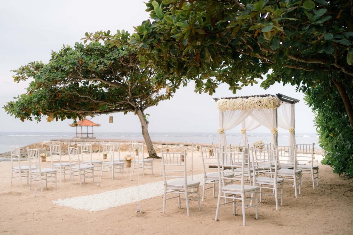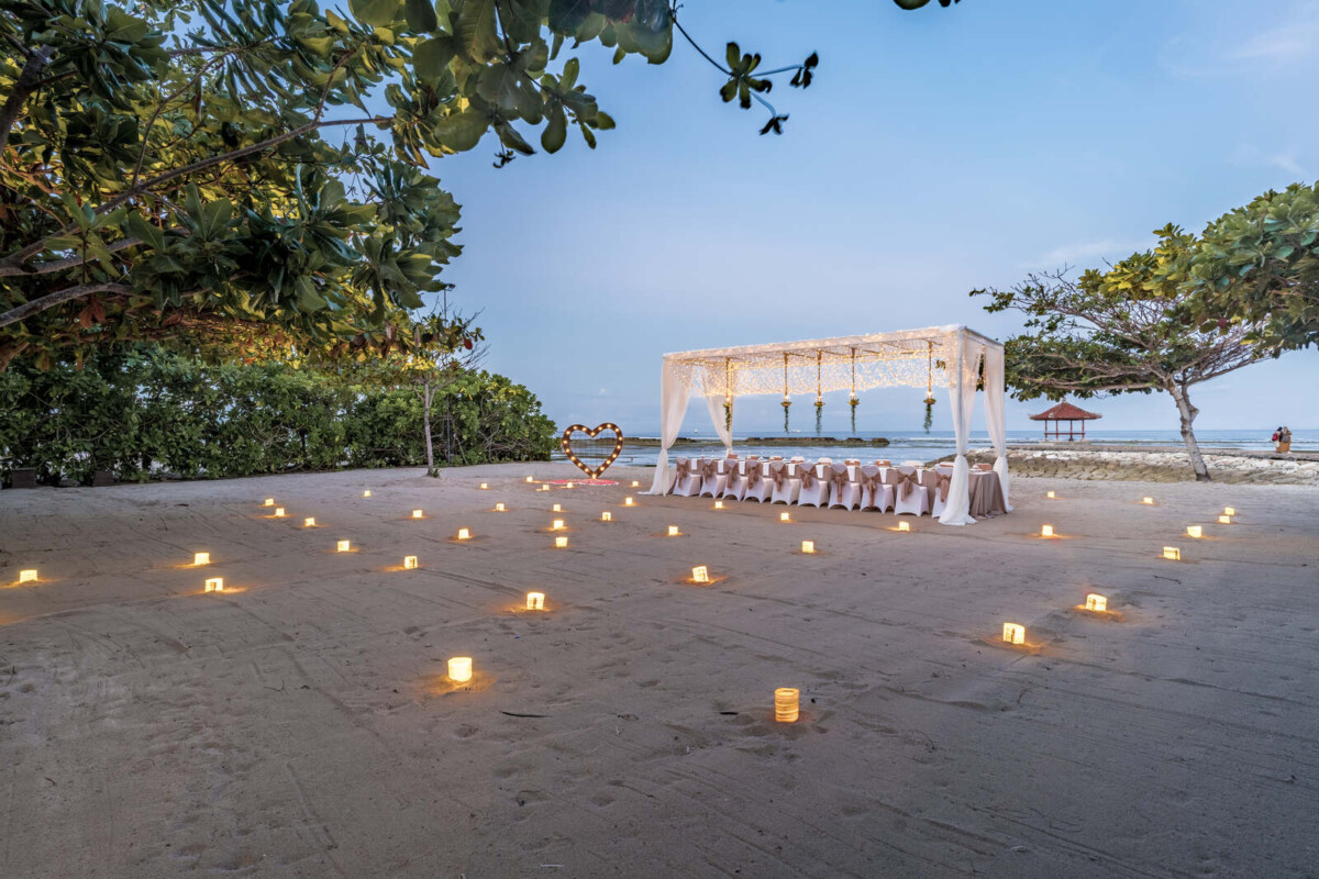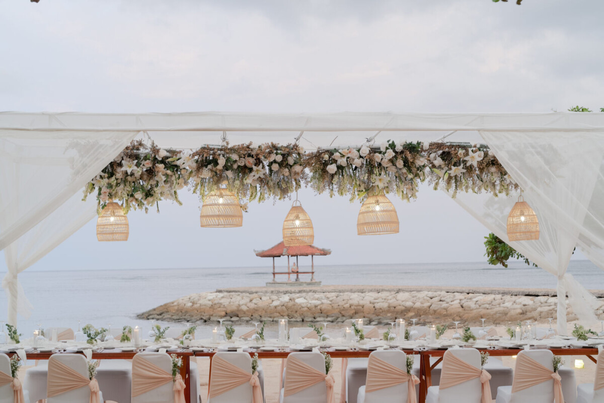 Guests are spoiled for choice when it comes to wedding and reception spaces at Kayumanis Nusa Dua. For the ceremony, pick between the serene and intimate Glass Chapel, the open-air Green Patio, or the stunning beach front. Then, take the party inside to the indoor Tetaring restaurant, the private lounge area, or any of the spaces already mentioned above. Wherever you end up choosing, rest assured that the venue’s dedicated wedding team will pull out all the stops to make your wedding just how you want it.