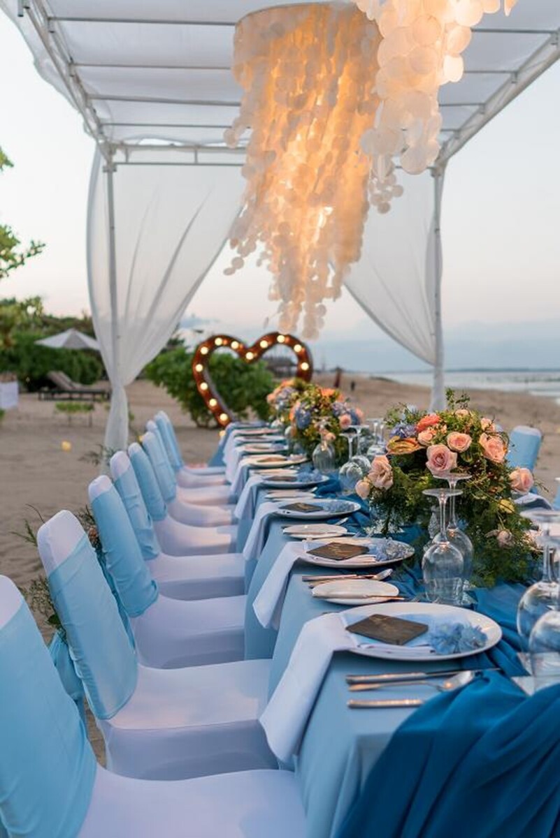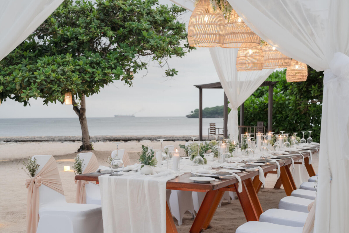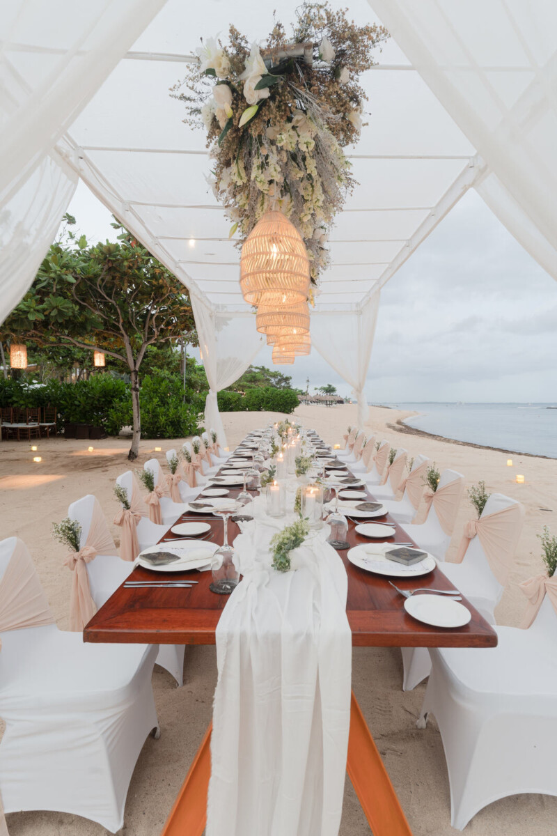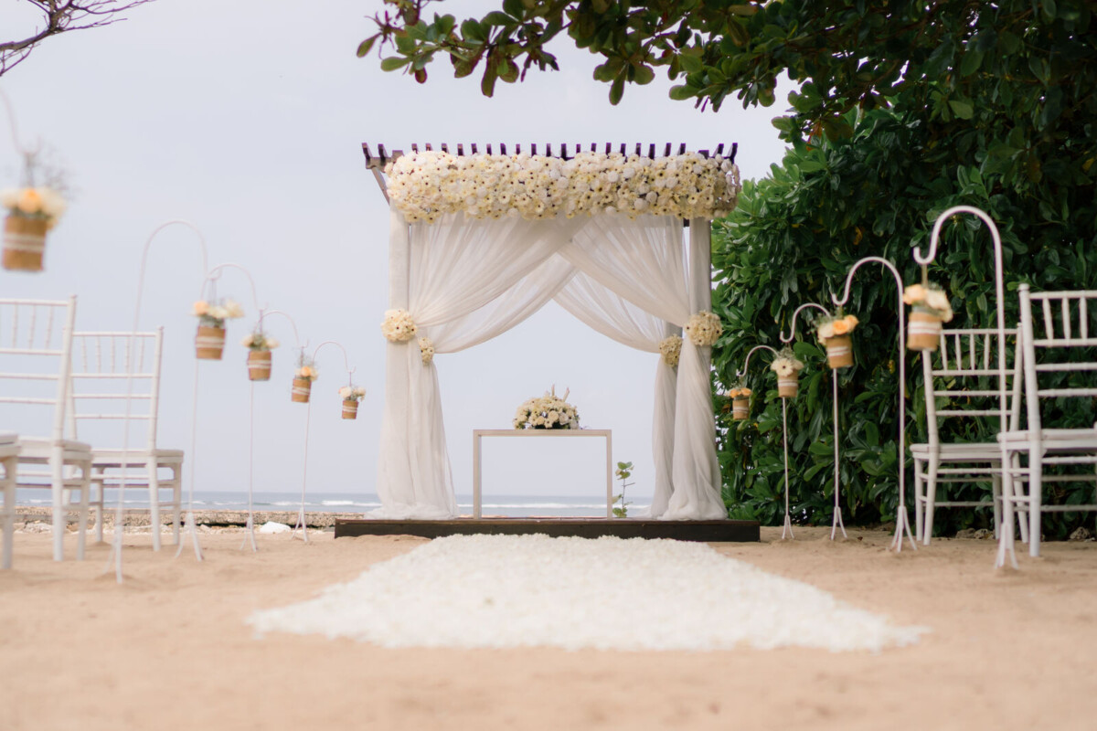 Guests are spoiled for choice when it comes to wedding and reception spaces at Kayumanis Nusa Dua. For the ceremony, pick between the serene and intimate Glass Chapel, the open-air Green Patio, or the stunning beach front. Then, take the party inside to the indoor Tetaring restaurant, the private lounge area, or any of the spaces already mentioned above. Wherever you end up choosing, rest assured that the venue’s dedicated wedding team will pull out all the stops to make your wedding just how you want it.