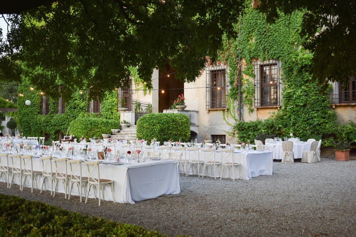 The estate offers an authentic Italian villa stay, where couples and guests can unwind among peaceful gardens and countryside views. Days are spent soaking up the landscape, sharing meals and enjoying time together, while evenings bring that golden Lombardy light and relaxed celebration vibes.