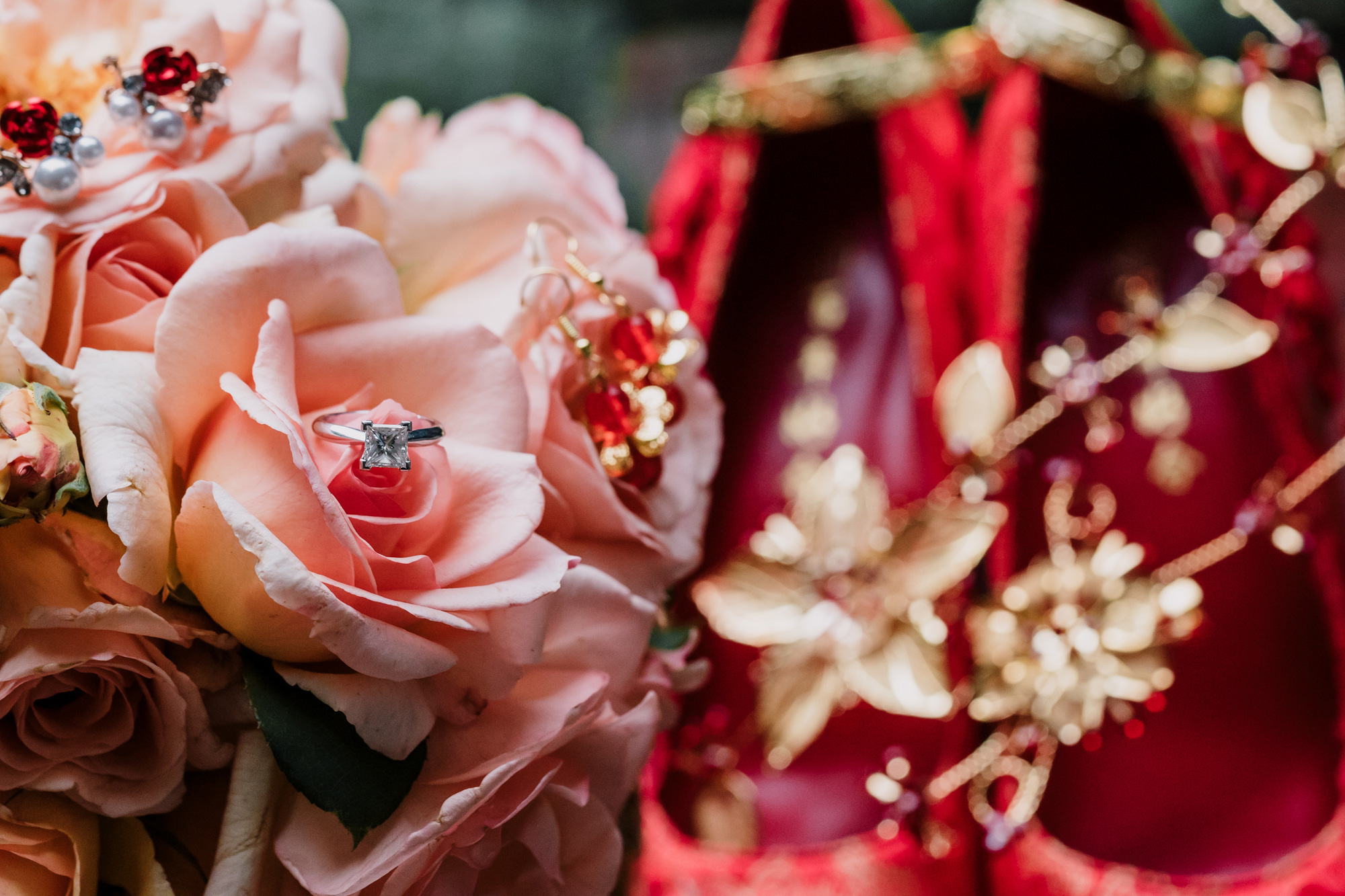 On the morning of their official wedding day, the pair wore red to present Gloria’s Hong Kong heritage.